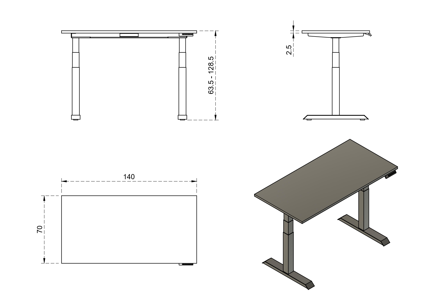 Elektryczne biurko Fighter Single Desk z białym stelażem 140x70 cm producenta Unique Meble.