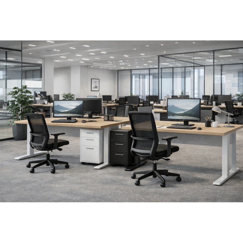 Stała wysokość biurka została zaprojektowana zgodnie ze standardami ergonomii pracy biurowej, co pozwala na komfortowe użytkowanie przez wiele godzin. Sky Base to rozwiązanie idealne do stanowisk komputerowych, pracy administracyjnej oraz przestrzeni coworkingowych.
