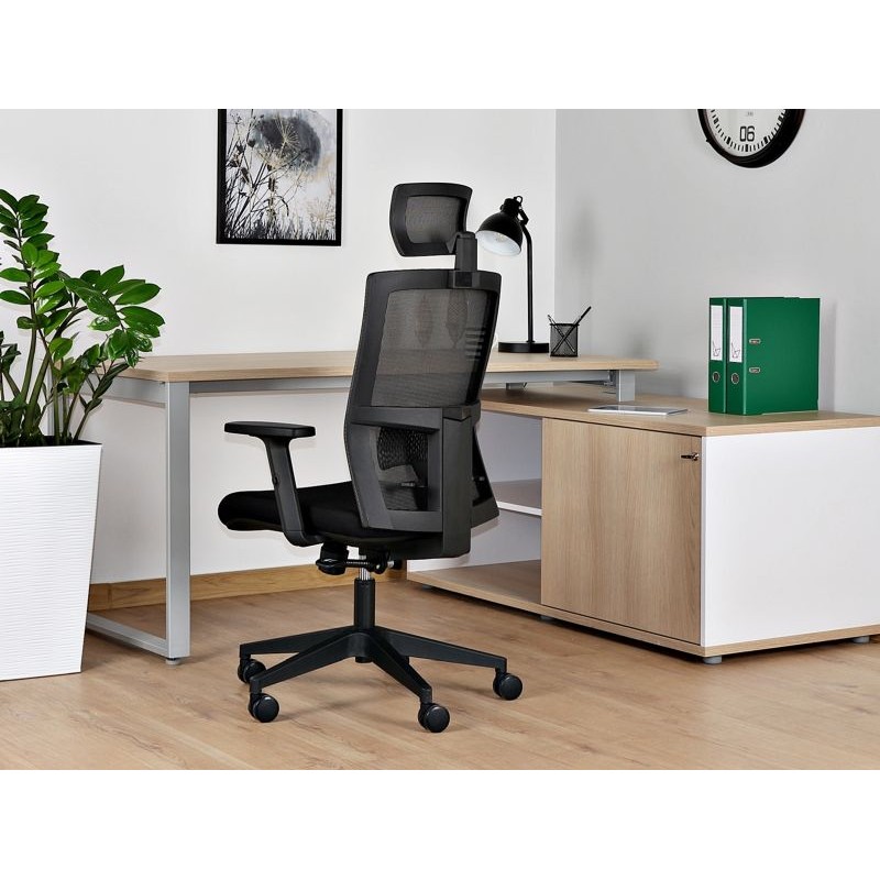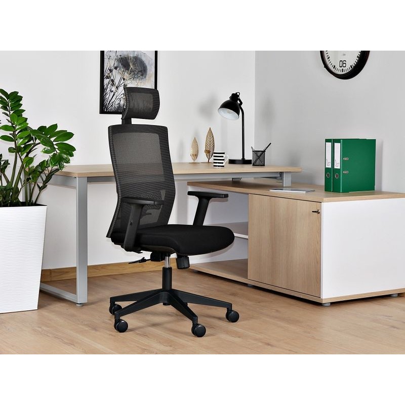 Fotel, który zapewnia stabilne podparcie pleców i całego kręgosłupa, z uwzględnieniem jego naturalnych krzywizn. Krzesło biurowe Task dostępne jest w uniwersalnym, czarnym kolorze.