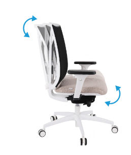 - Oparcie wychyla się synchronicznie z siedziskiem, naśladując ruch Użytkownika w fotelu. Mamy możliwość blokady wychylenia w jednej z 4 dostępnych pozycji, w tym w standardowej pozycji do pracy.