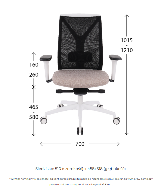 - Płynnie regulowana wysokość oraz głębokość siedziska. Regulacja głębokości siedziska ogranicza ryzyko drętwienia uda dla wysokich Użytkowników lub niewykorzystania funkcji oparcia dla osób legitymujących się nieco niższym wzrostem.