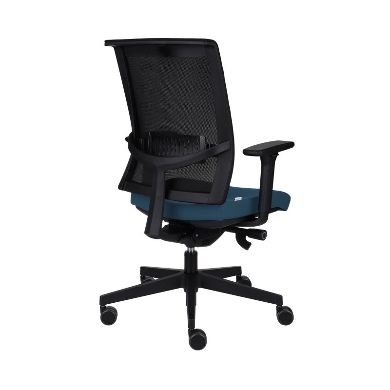Tapicerowane jest najwyższej jakości czarną siatką o wysokiej odporności na ścieralność (70 tyś. cykli), która świetnie dopasowuje się do kształtu pleców Użytkownika i bardzo dobrze przepuszcza powietrze,