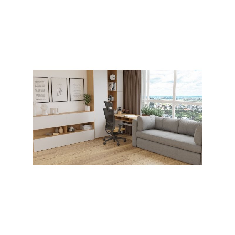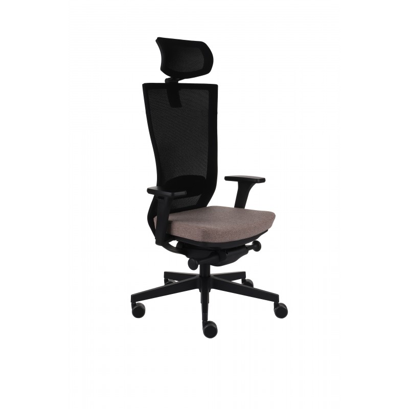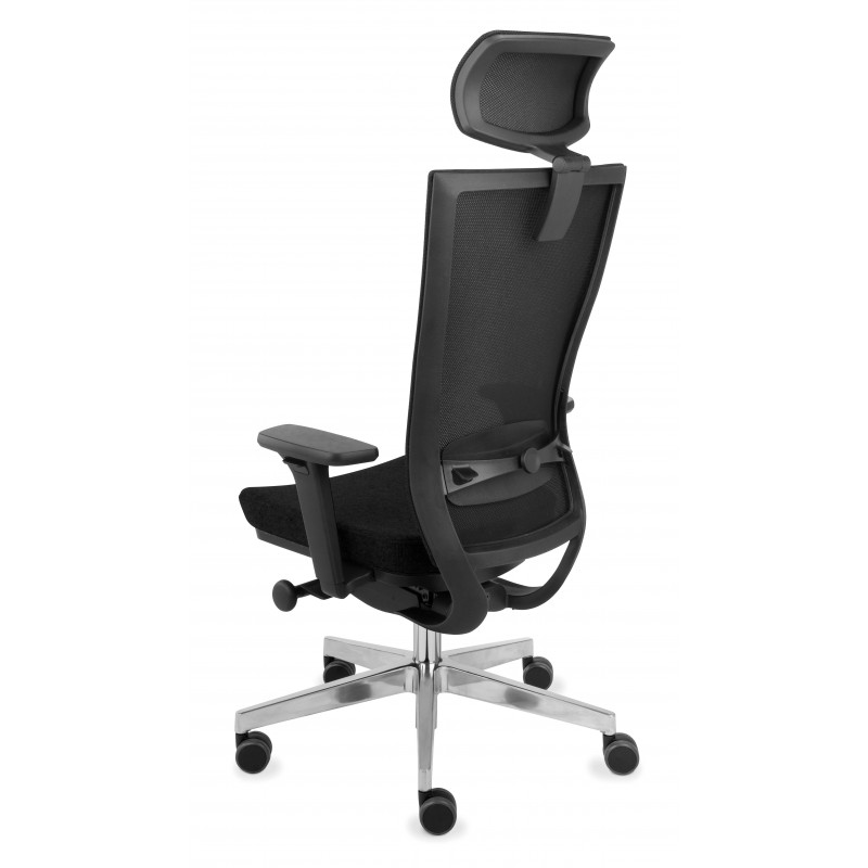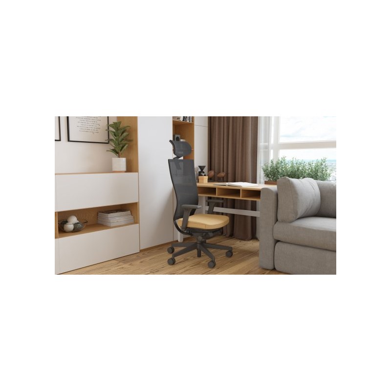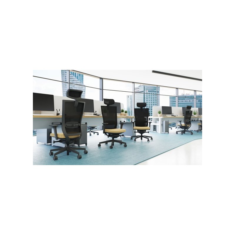 Zagłówek tapicerowany jest z siatką Runner w kolorze czarnym, która zapewnia odpowiednią cyrkulację powietrza. Gwarantuje ergonomiczne podparcie, które ułatwia utrzymanie zdrowej pozycji kręgosłupa oraz pozwala zrelaksować się w chwilach odpoczynku.