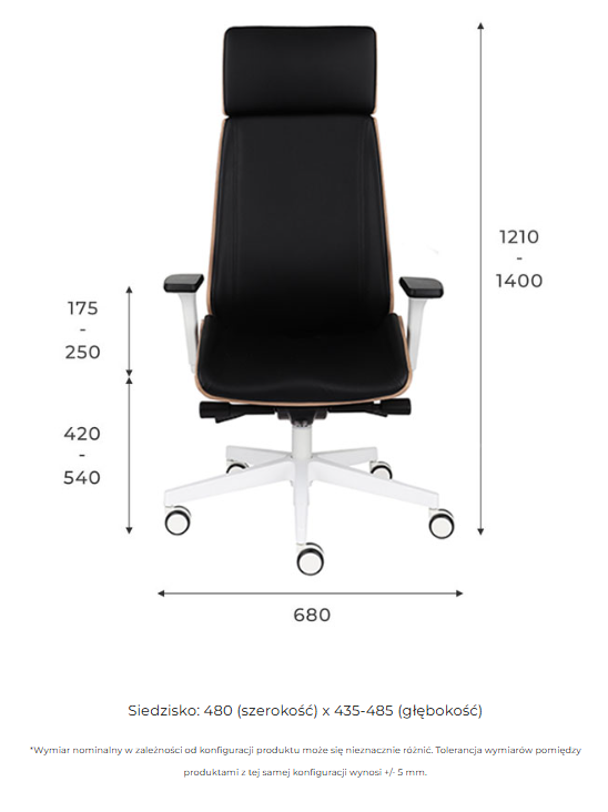 Pięcioramienna podstawa jezdna jest dostępna w dwóch kolorach: białym (white) oraz chromowanym (chrome). Wszystkie wersje kolorystyczne uwzględniono w cenniku produktu.