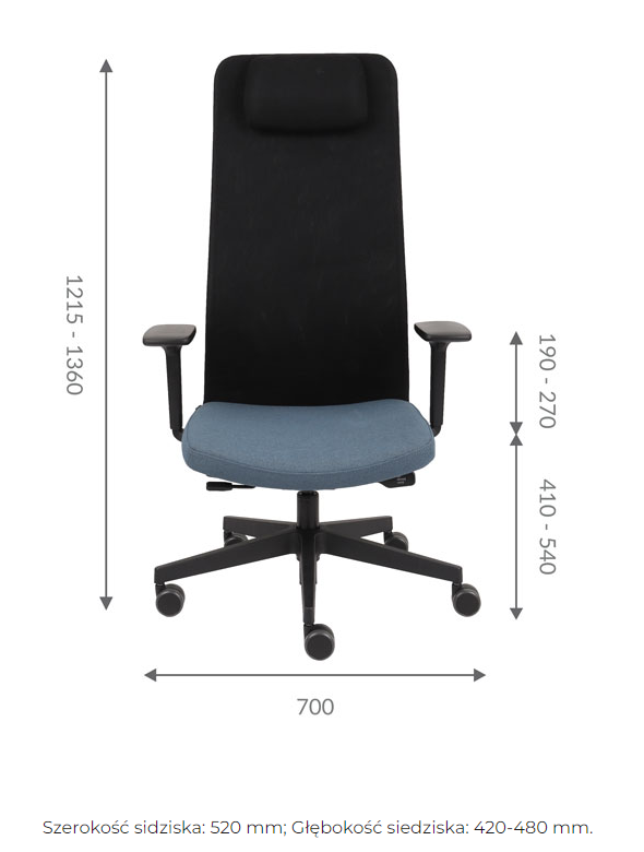 Pięcioramienna czarna nylonowa podstawa jezdna wyposażona jest w kółka miękkie przystosowane do bezpiecznej pracy na parkiecie, panelach.