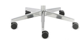Pięcioramienna aluminiowa polerowana podstawa jezdna wyposażona jest w kółka miękkie przystosowane do bezpiecznej pracy na parkiecie, panelach.