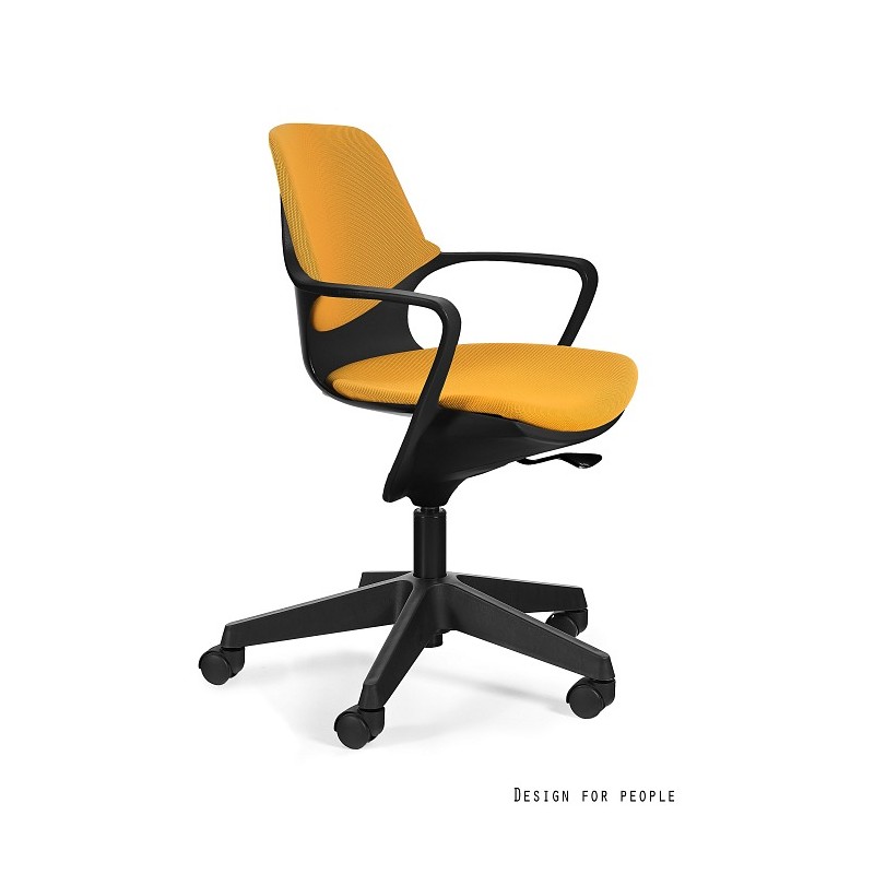 Oparcie, podłokietniki i siedzisko wykonane z mocnego tworzywa PP dostępnego w 4 kolorach: czarnym, czerwonym, taupe i żółtym.