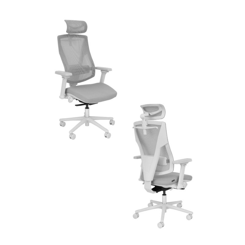 Fotel Futura 4S Grey Plus posiada praktyczny regulowany zagłówek (3D) pozwalający na wygodne wsparcie głowy podczas pracy i chwil relaksu.