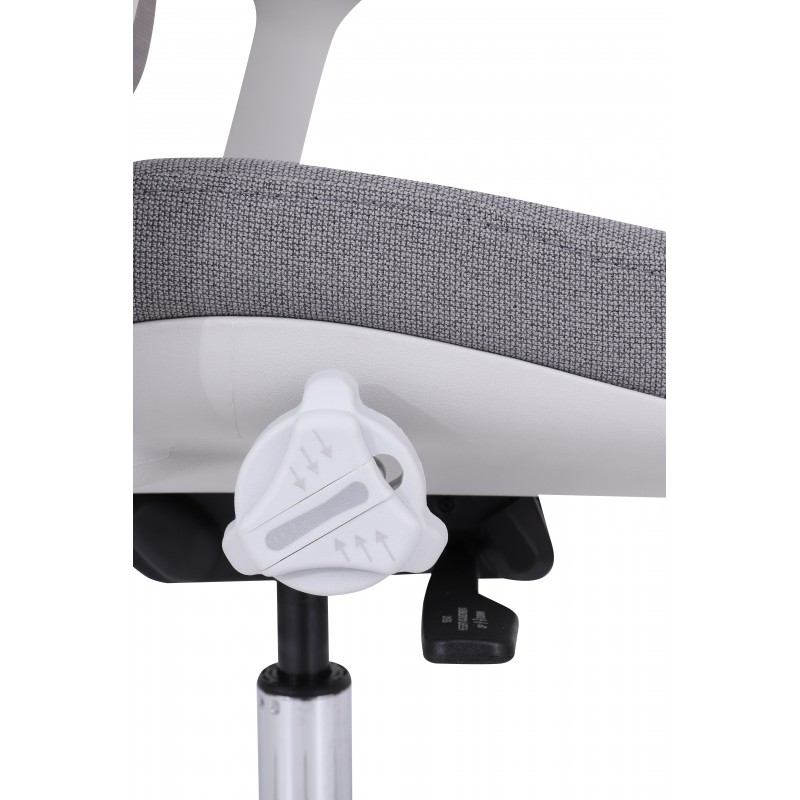 Siedzisko fotela zostało zaprojektowane tak, aby zapewniać komfort nawet przy wielogodzinnej pracy. Możliwość regulacji twardości centralnej części siedziska za pomocą estetycznego pokrętła pozwala dostosować stopień sprężystości do Twoich preferencji – to rozwiązanie rzadko spotykane w standardowych fotelach biurowych.
