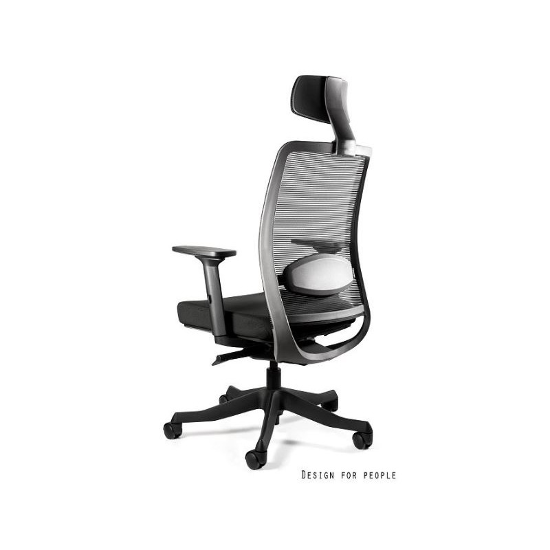 Oparcie i zagłówek tapicerowane siatką, konstrukcja w kolorze charcoal - wersja podstawowa zawiera siatkę SM01 czarną