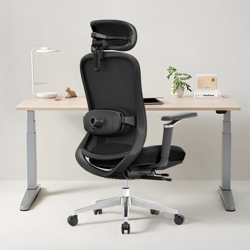 Fotel umożliwia odchylenie oparcia aż do 145°, co pozwala wygodnie zmienić pozycję w trakcie pracy, przerw i odpoczynku. Dodatkowo działa funkcja kołysania (bujania), wspierająca naturalny mikro-ruch ciała podczas siedzenia.