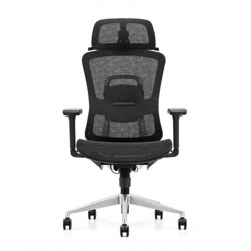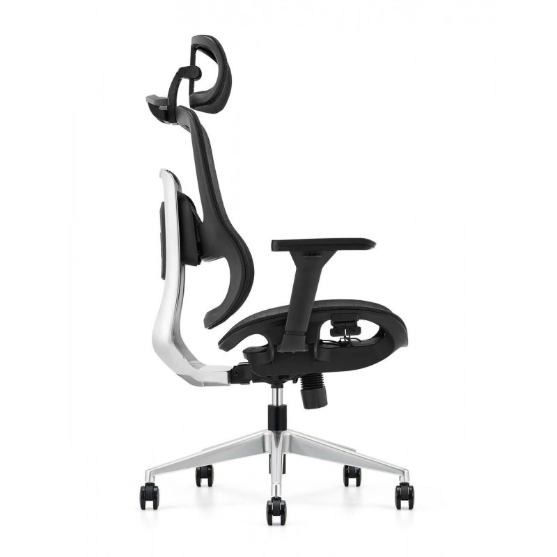 Wzmocniona, oddychająca siatka oraz wspornik lędźwiowy w kształcie litery „S” wspierają naturalne krzywizny kręgosłupa. Regulacja wysokości oparcia pozwala dopasować fotel do każdej sylwetki, także dla wyższych użytkowników.