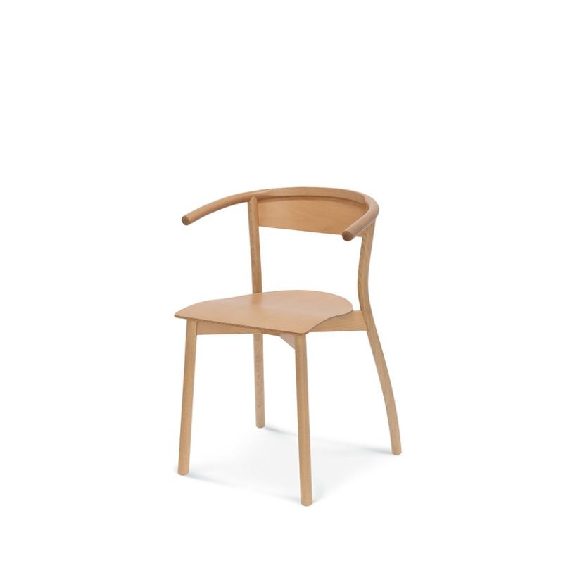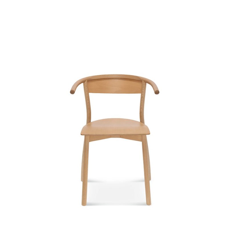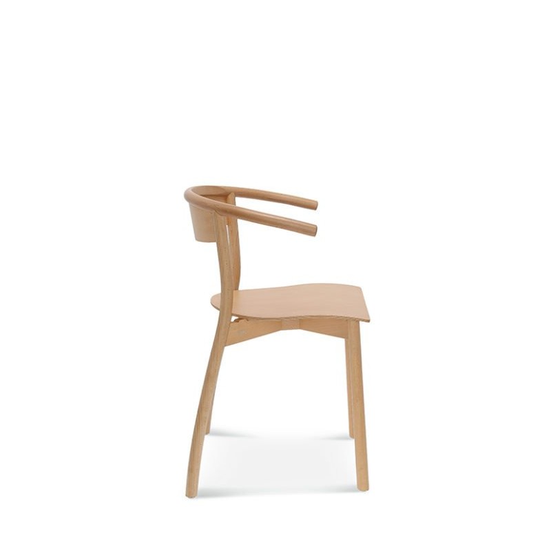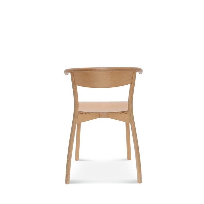 Prosta, ale charakterystyczna konstrukcja. Typowy kształt podłokietników i tylnych nóg wykonanych z giętego drewna jest kluczową cechą fotela.