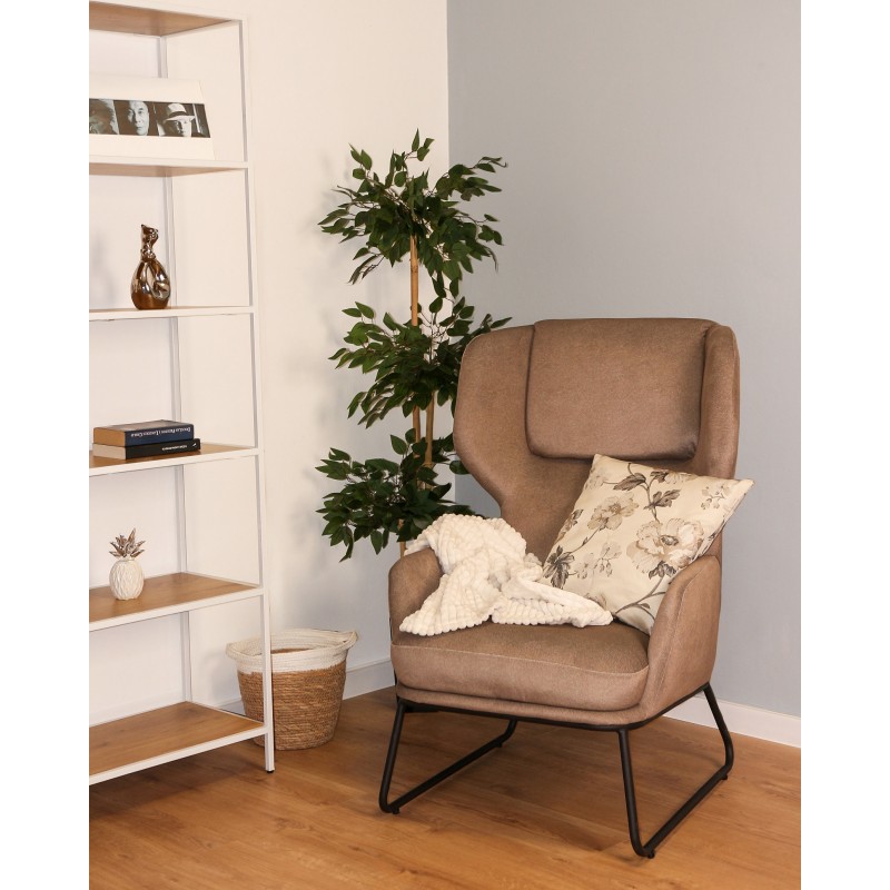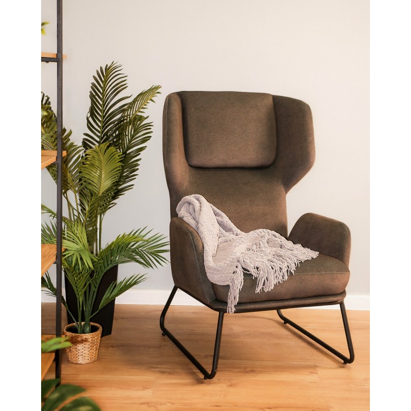 Fotel w całości tapicerowany tkaniną w kolorze brązowym lub szarym