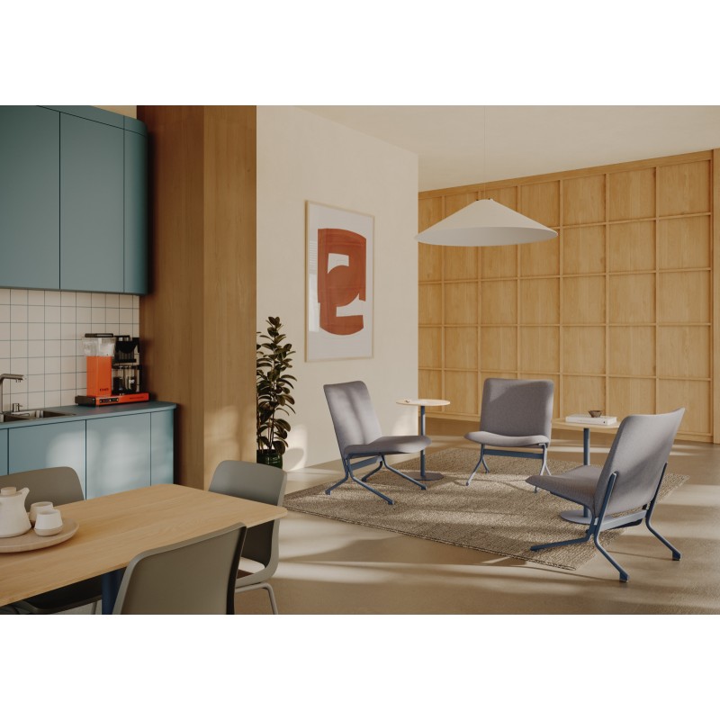 Oparcie wykonane jest z polipropylenu w 75% pochodzącego z recyklingu, a siedzisko z poliamidu w 70% pochodzącego z recyklingu.