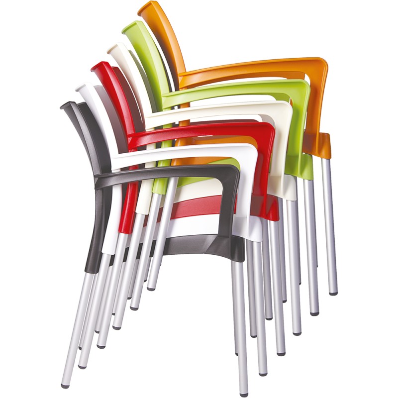 Nóżki aluminiowe z końcówkami antypoślizgowymi w kolorze siedziska.