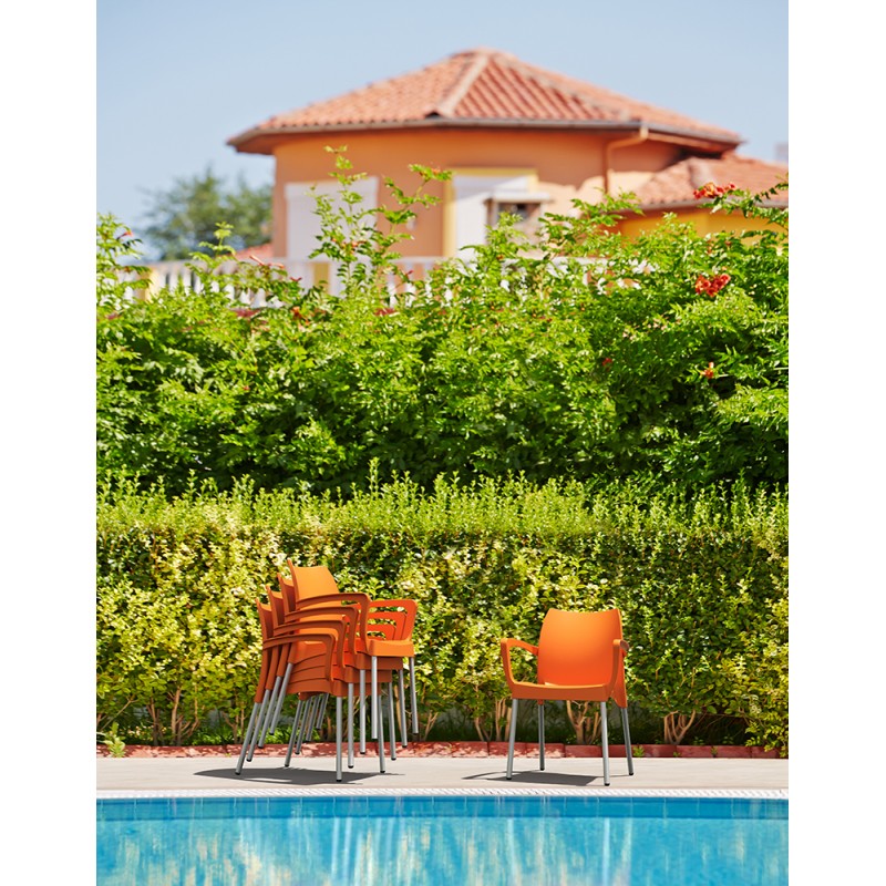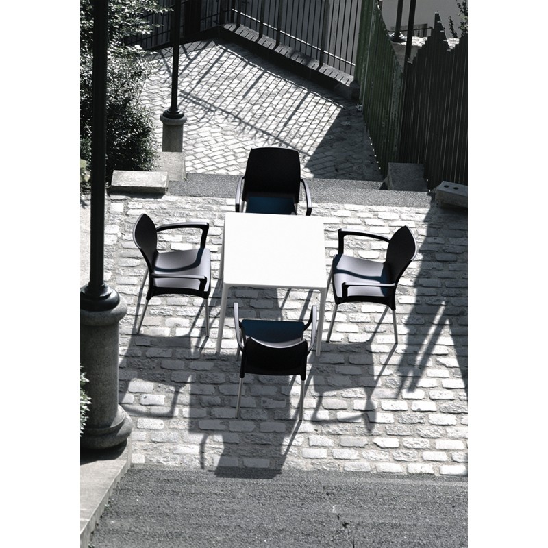 Oparcie zwężające się ku górze. Odporne na wilgoć i promienie UV.