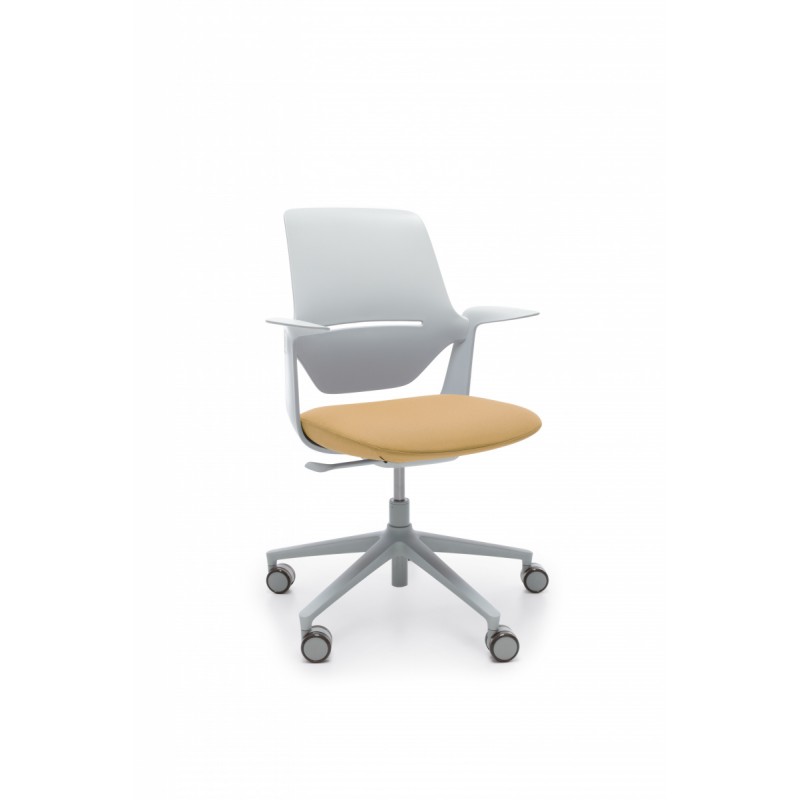 Studio ITO Design stworzyło krzesło, które jednocześnie pasuje do nowoczesnego biura, sal konferencyjnych ale także nadaje się do pracy hybrydowej. Sprawdzi się na home office czy na uczelniach, dbając o kręgosłup użytkownika.