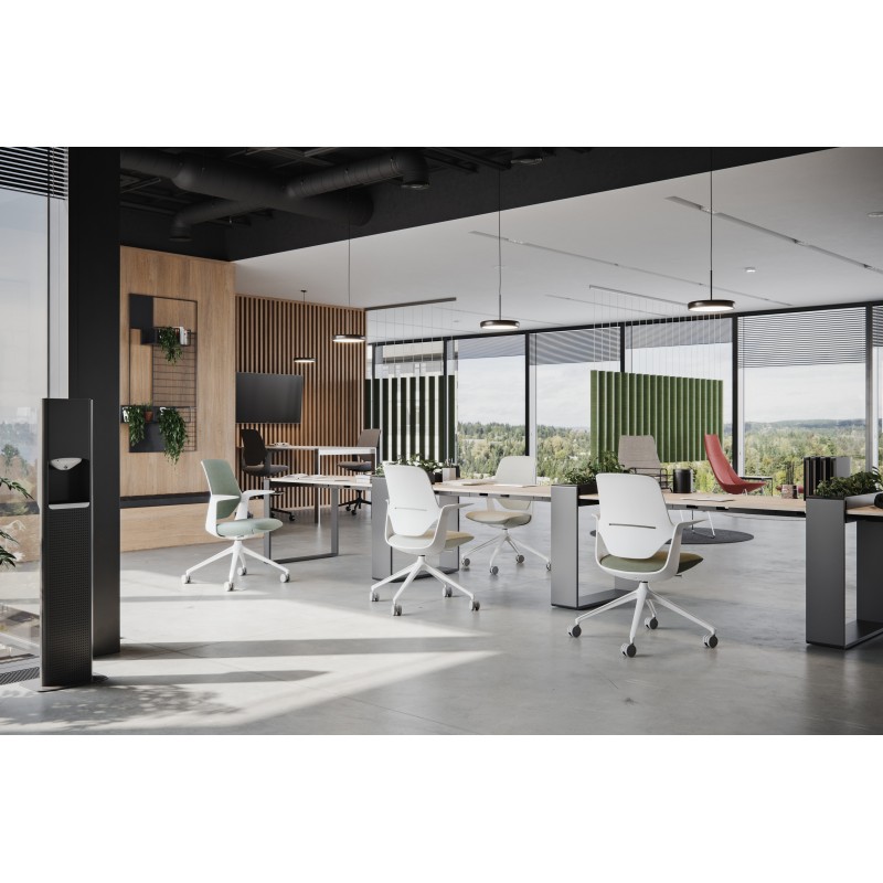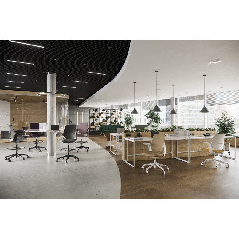 Studio ITO Design stworzyło krzesło, które jednocześnie pasuje do nowoczesnego biura, sal konferencyjnych ale także nadaje się do pracy hybrydowej. Sprawdzi się na home office czy na uczelniach, dbając o kręgosłup użytkownika.
