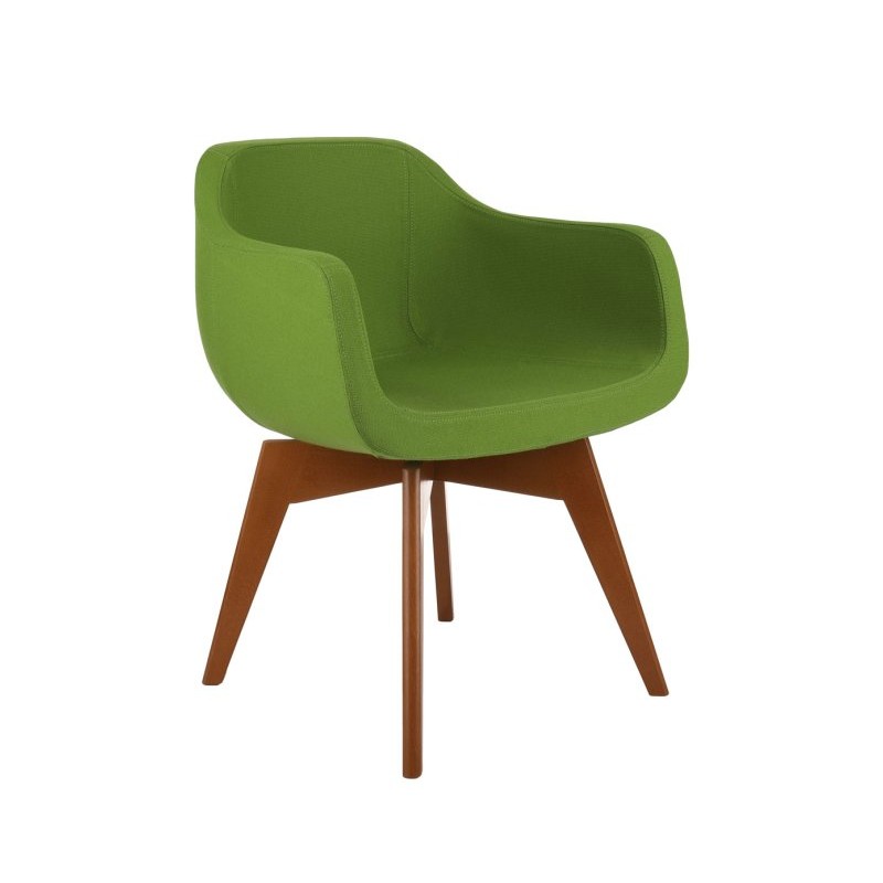 Fotel dostępny jest w szerokiej gamie tkanin i kolorów, co umożliwia dopasowanie go do identyfikacji wizualnej firmy lub stylu wnętrza.