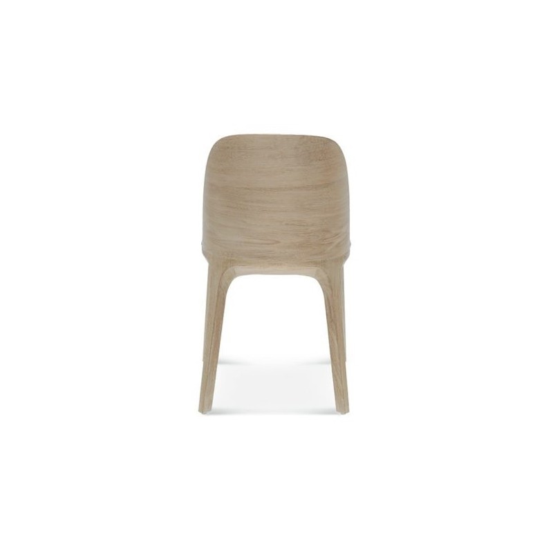 Oparcie eksponuje wyraźną powierzchnię naturalnego drewna, a zastosowanie sklejki ze zmienną grubością nadaje bryle subtelności.