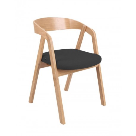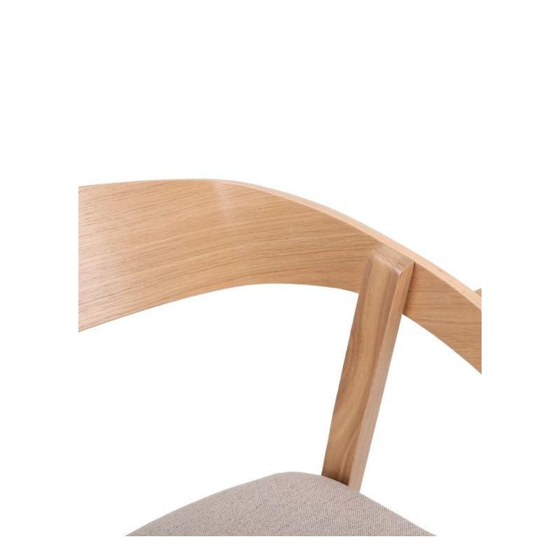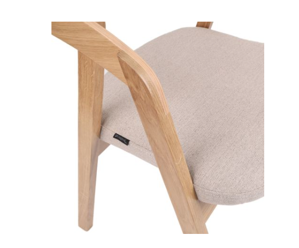 Stelaż krzesła wykonany jest z wyselekcjonowanego drewna dębowego. Dzięki przestrzeni między siedziskiem i oparciem, udało się uzyskać lekką wizualnie bryłę.