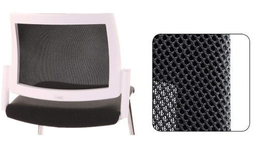 Krzesło Set Net posiada oparcie z trwałej siatki Runner w kolorze czarnym o odporności na ścieralność aż 70 tys. cykli Martindale'a, które zapewnia wyjątkową przewiewność i wygodę, idealną do długotrwałego użytkowania.