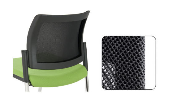 Krzesło Set Net posiada oparcie z trwałej siatki Runner w kolorze czarnym o odporności na ścieralność aż 70 tys. cykli Martindale'a, które zapewnia wyjątkową przewiewność i wygodę, idealną do długotrwałego użytkowania.