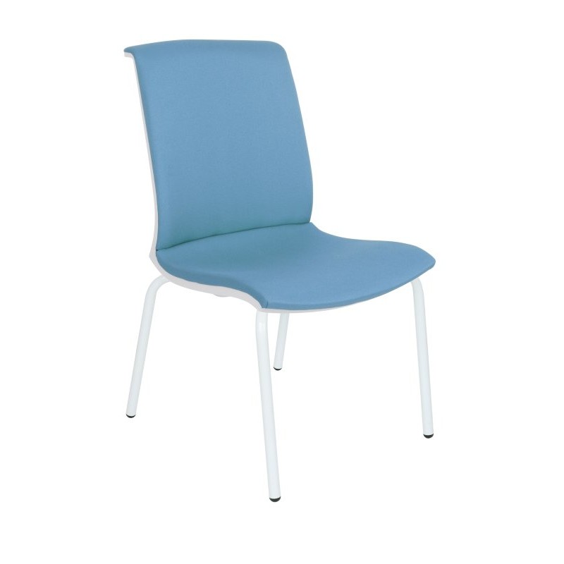 Model konferencyjny Level 4L - to cztery, metalowe nóżki, malowane proszkowo na kolor biały LUB chromowany, błyszczący. Symbol WT - oznacza biały stelaż (W), tapicerowane oparcie i siedzisko wybraną tkaniną (T).