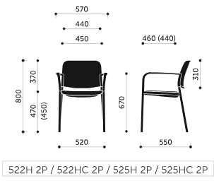dostępna w różnych wariantach: na czterech nogach, nogach z kółkami lub na płozie, z siedziskiem plastikowym lub tapicerowanym, oparciem plastikowym lub tapicerowanym, z podłokietnikami lub bez