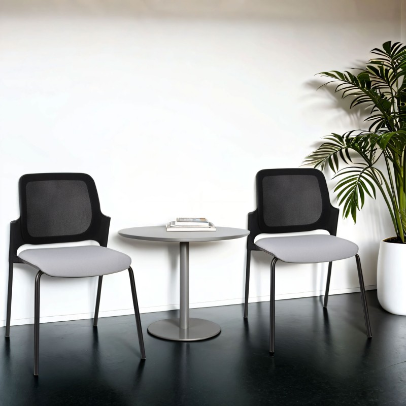Symbol BS oznacza, że stelaż krzesła oferowany jest w kolorze czarnym, a oparcie tapicerowane jest wytrzymałą siatką.