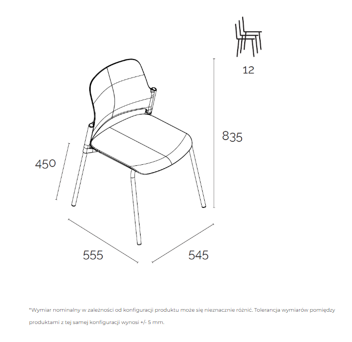 Krzesła mogą być sztaplowane jedno na drugim (maks. 12 sztuk), co znacząco ułatwia ich przechowywanie.