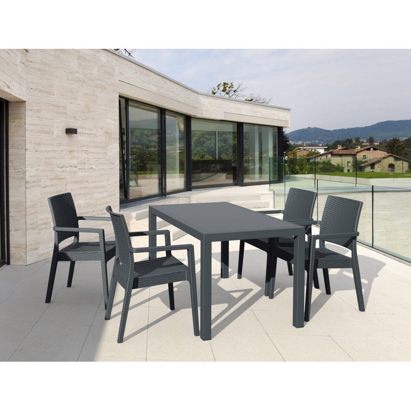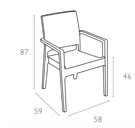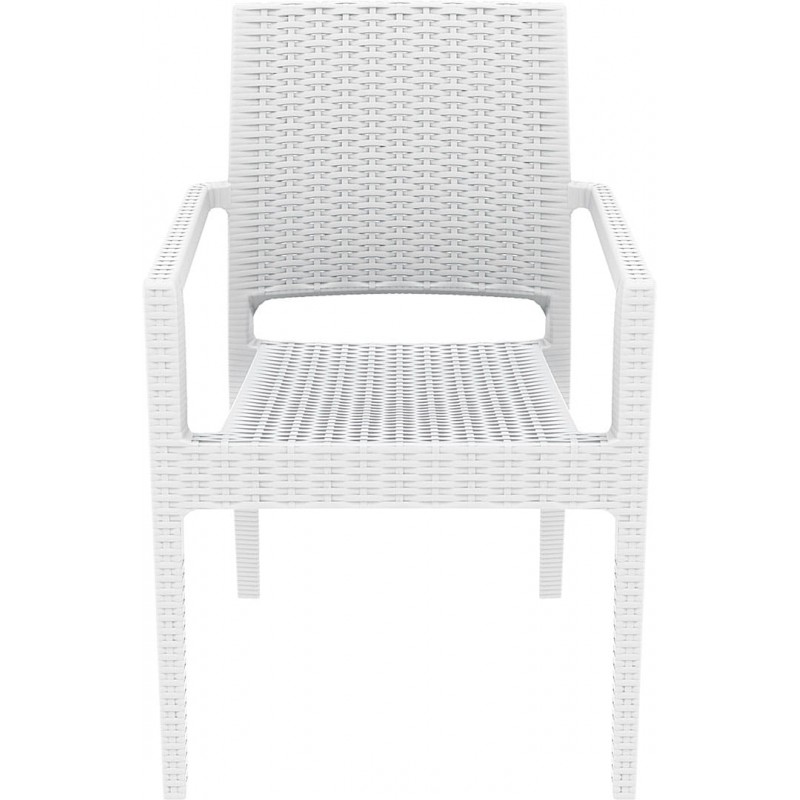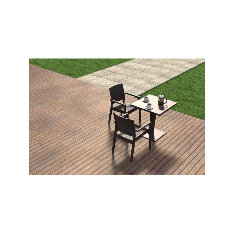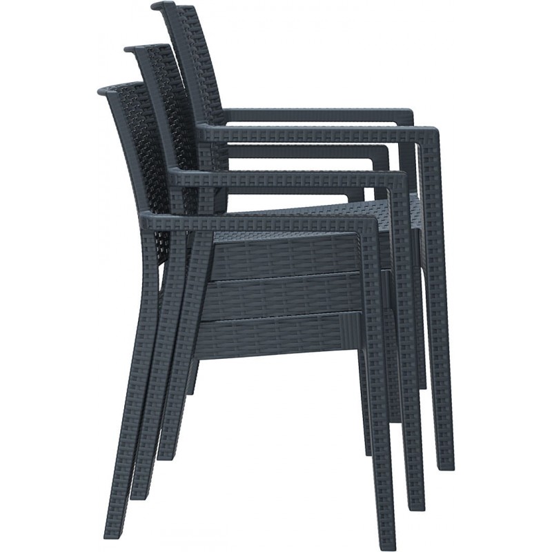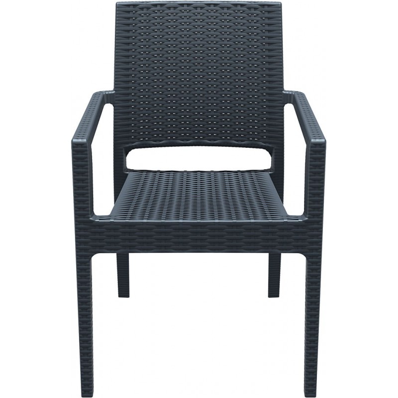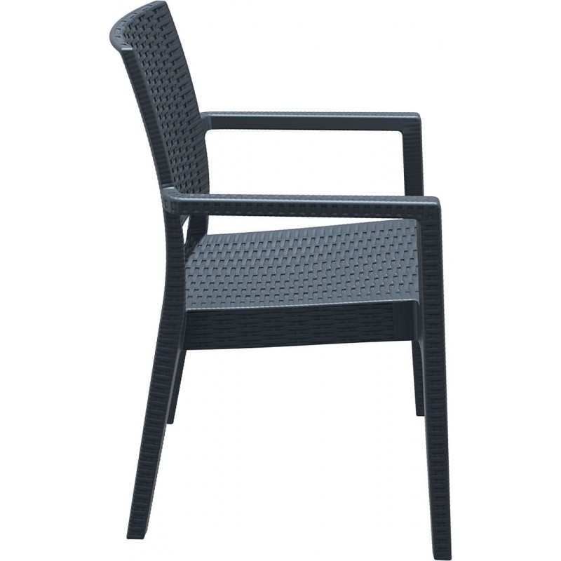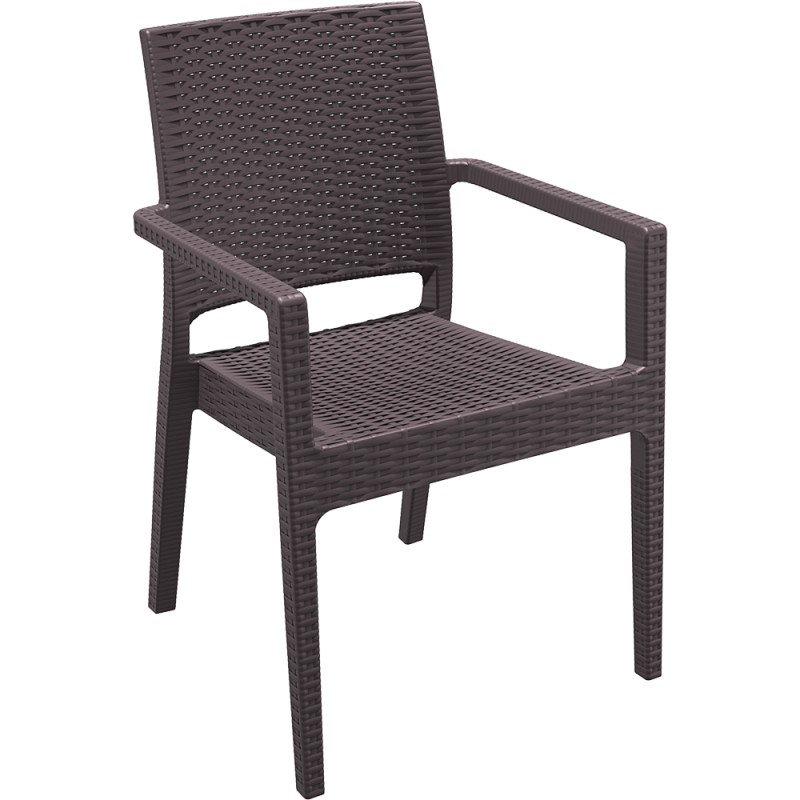 Krzesło Ibiza z podłokietnikami wykonane jest polyrattanu czyli z żywicy wzmocnionej włóknem szklanym stylizowanej na technorattan.
