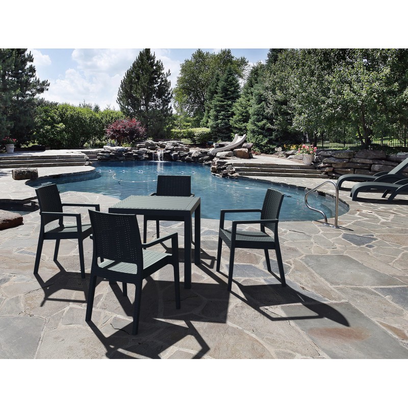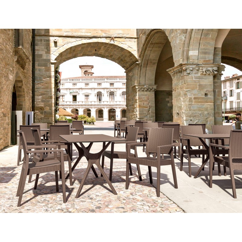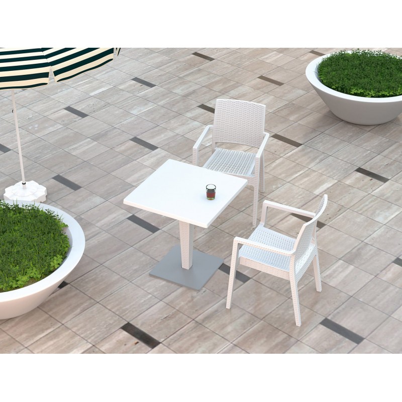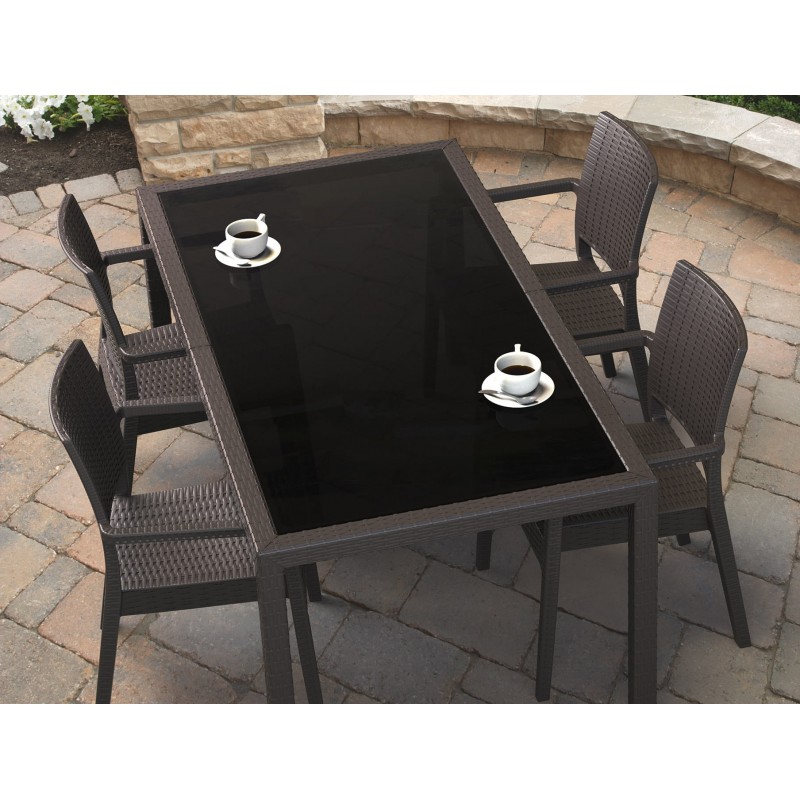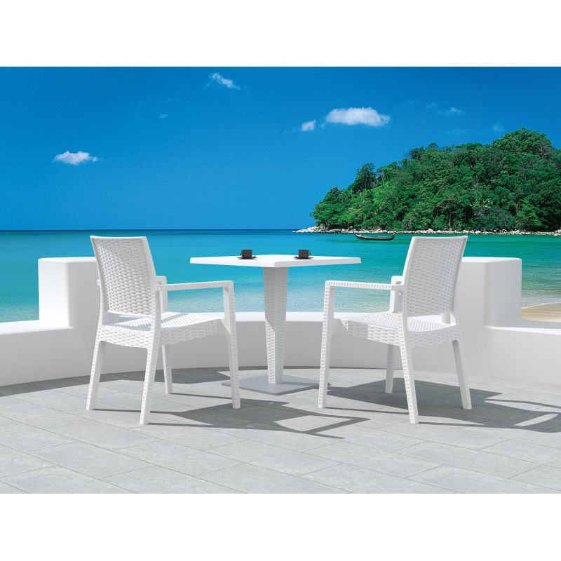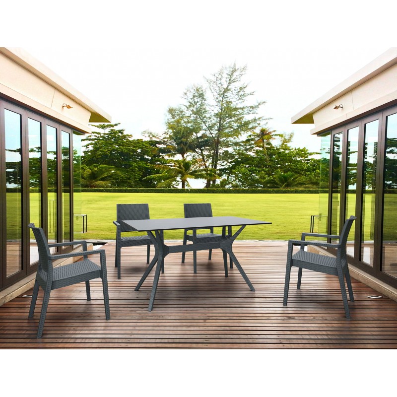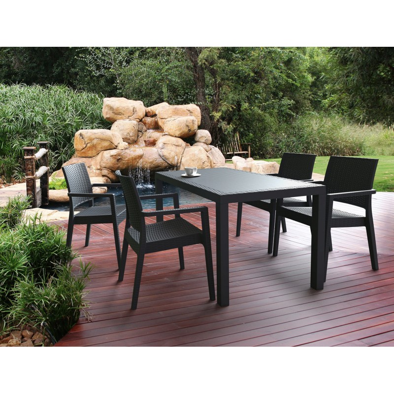 Krzesło Ibiza z podłokietnikami wykonane jest polyrattanu czyli z żywicy wzmocnionej włóknem szklanym stylizowanej na technorattan.
