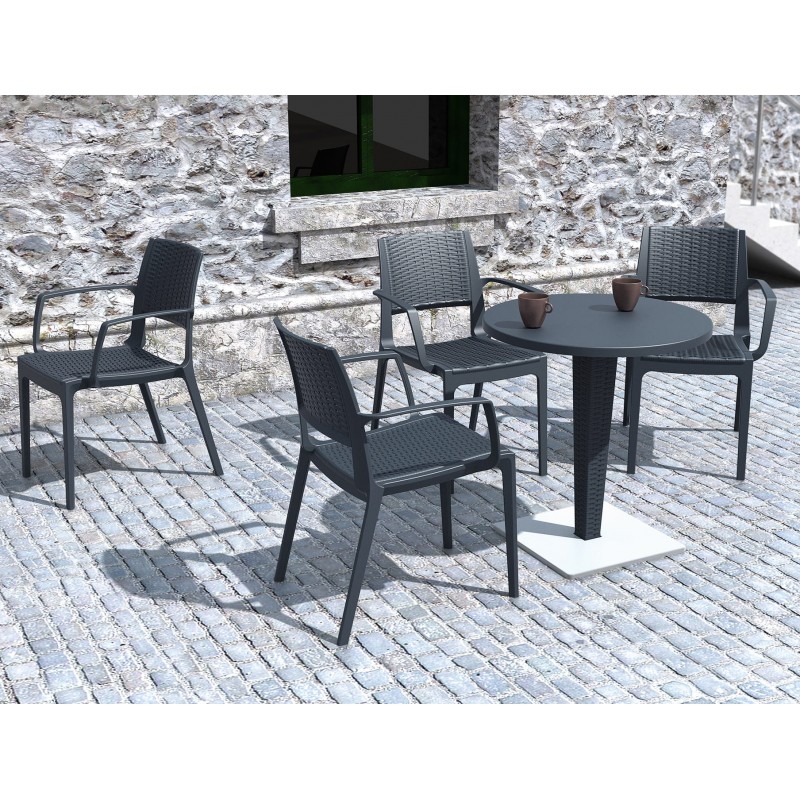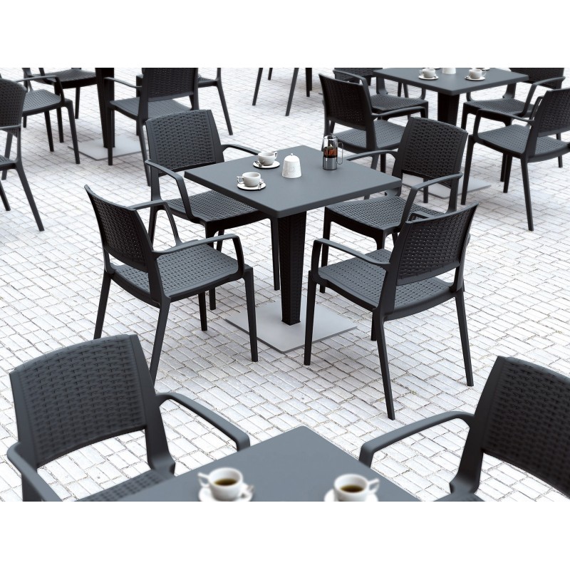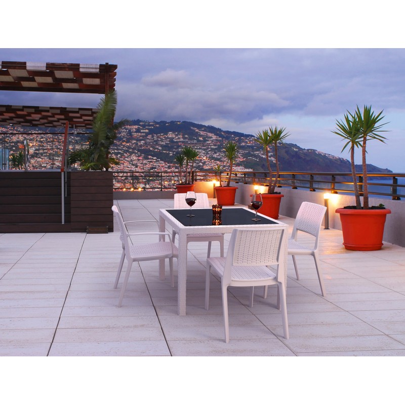Część powierzchni krzesła jest gładka bez elementów stylizowanych na technorattan przez co krzesło sprawia wrażenie lżejszego i delikatniejszego.