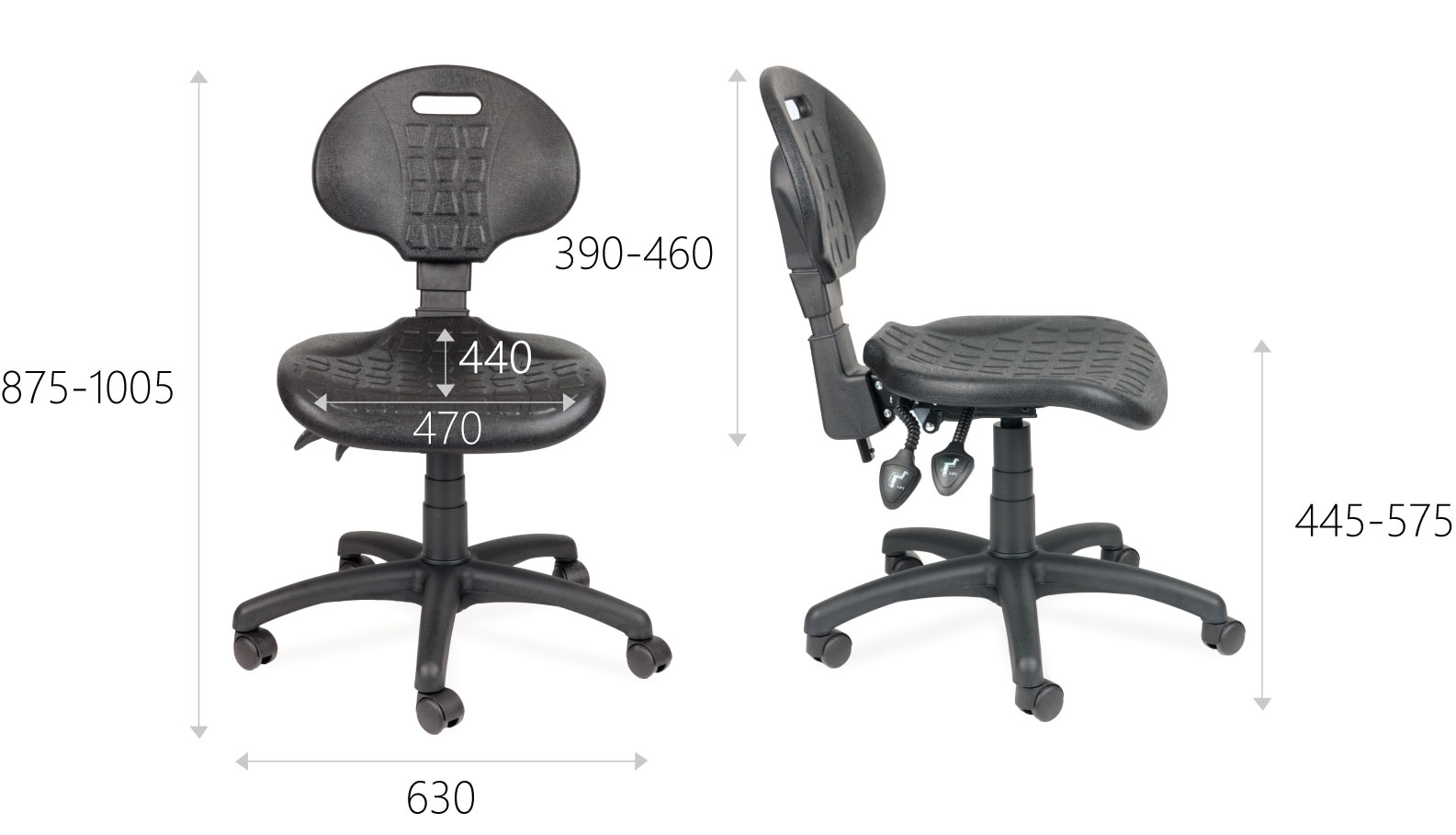 Formowane siedzisko z polipropylenu jest antypoślizgowe oraz posiada odpowiednio nadany kształt zapewniając wygodne użytkowanie w miejscu pracy.