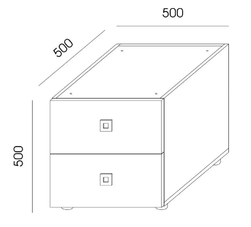 Kubik KS-1 kwadratowy z dwiema szufladami. Uchwyty wpuszczane w kolorze srebrnym RAL9006.