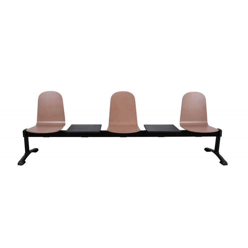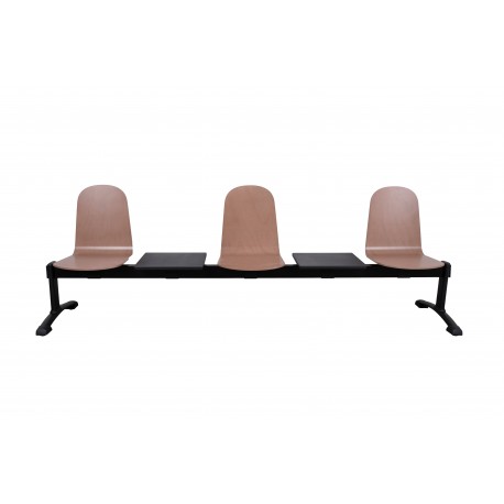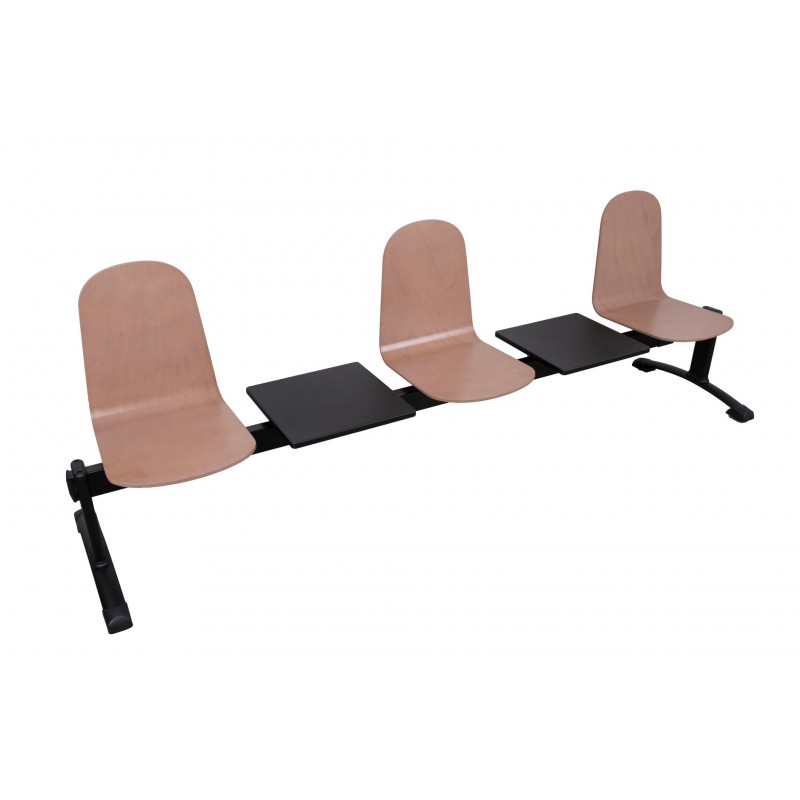 Oferowany model pomieści trzech użytkowników jednocześnie. Wyposażony w dwa praktyczne blaty umieszczone pomiędzy siedziskami. Dzięki zastawaniu siedzisk lakierowanego drewna, ławka jest łatwa w utrzymaniu czystości. Sprawdzi się idealnie w pomieszczeniach typu poczekalnie, szatnie czy przestrzeń publiczna.