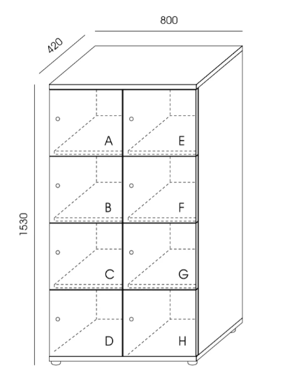 Locker LC-8 to 8 szafek skrytkowych, zamek wg konfiguracji. Oferta do otwartych przestrzeni biurowych.