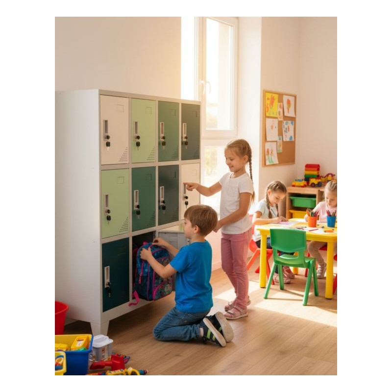 Model doskonale sprawdzi się w żłobkach, przedszkolach, szkołach podstawowych, świetlicach czy innych placówkach opiekuńczych. Dzięki przyjaznej stylistyce i spokojnej kolorystyce w odcieniach zieleni wprowadza do wnętrza harmonijną atmosferę sprzyjającą nauce, zabawie oraz utrzymaniu porządku.