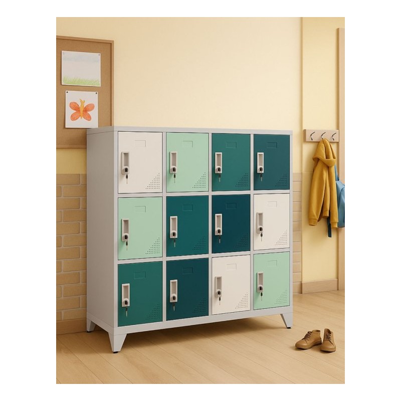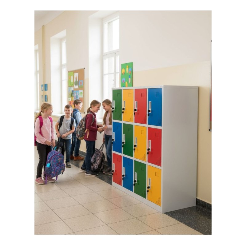 Szafa skrytkowa Rio Green to funkcjonalne i estetyczne rozwiązanie przeznaczone do przestrzeni edukacyjnych oraz miejsc, w których ważna jest organizacja i wygodne przechowywanie rzeczy.