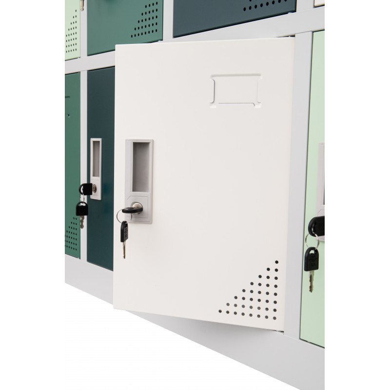 Każda skrytka posiada wizytownik umożliwiający oznaczenie użytkownika oraz perforacje wentylacyjne, które zapewniają odpowiednią cyrkulację powietrza wewnątrz.