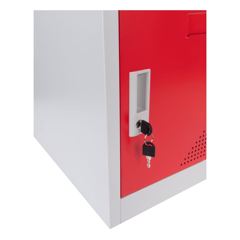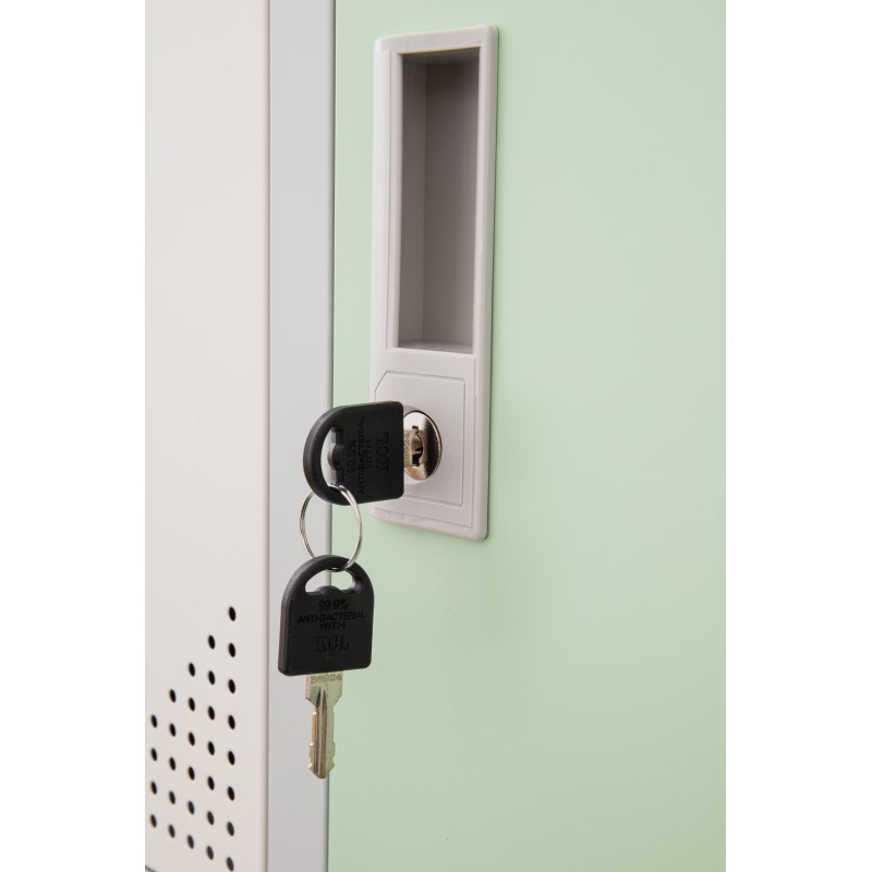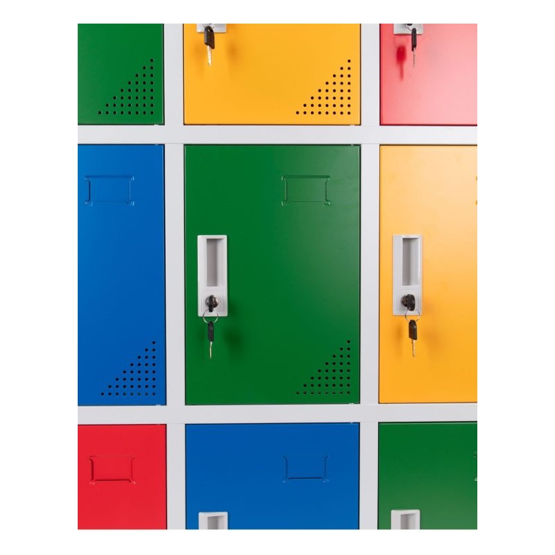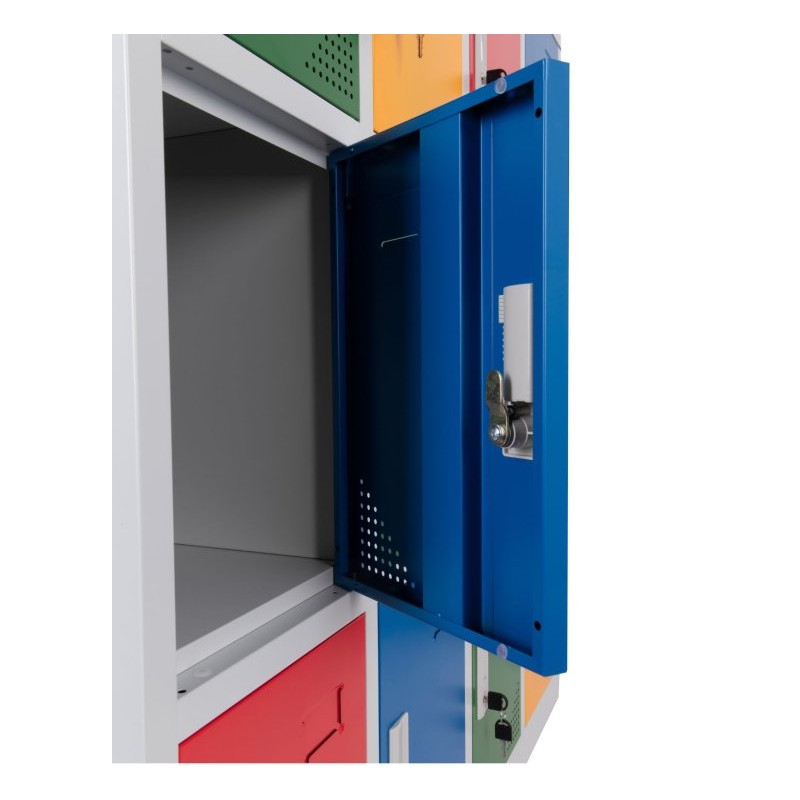 Każda skrytka wyposażona została w praktyczny zamek krzywkowy obsługiwany kluczykiem, który zapewnia bezpieczne przechowywanie rzeczy osobistych.