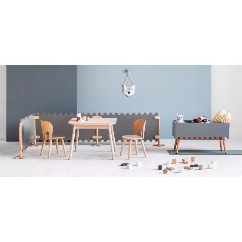 Kolekcja Nino to krzesełko, stół, pojemnik na zabawki, wysokie krzesełko dla starszych dzieci oraz płotek pozwalający wydzielić strefę zabaw dla dzieci. Dzięki Nino można stworzyć estetyczną przestrzeń przyjazną dla rozwoju dziecka, wspierającą jego kreatywność i ekspresję.
