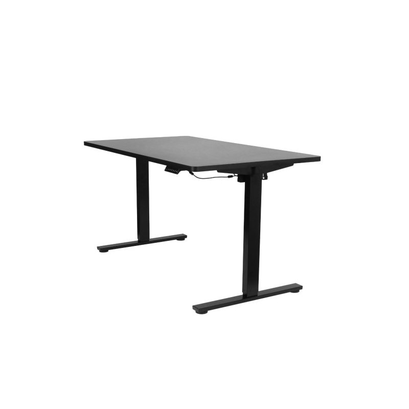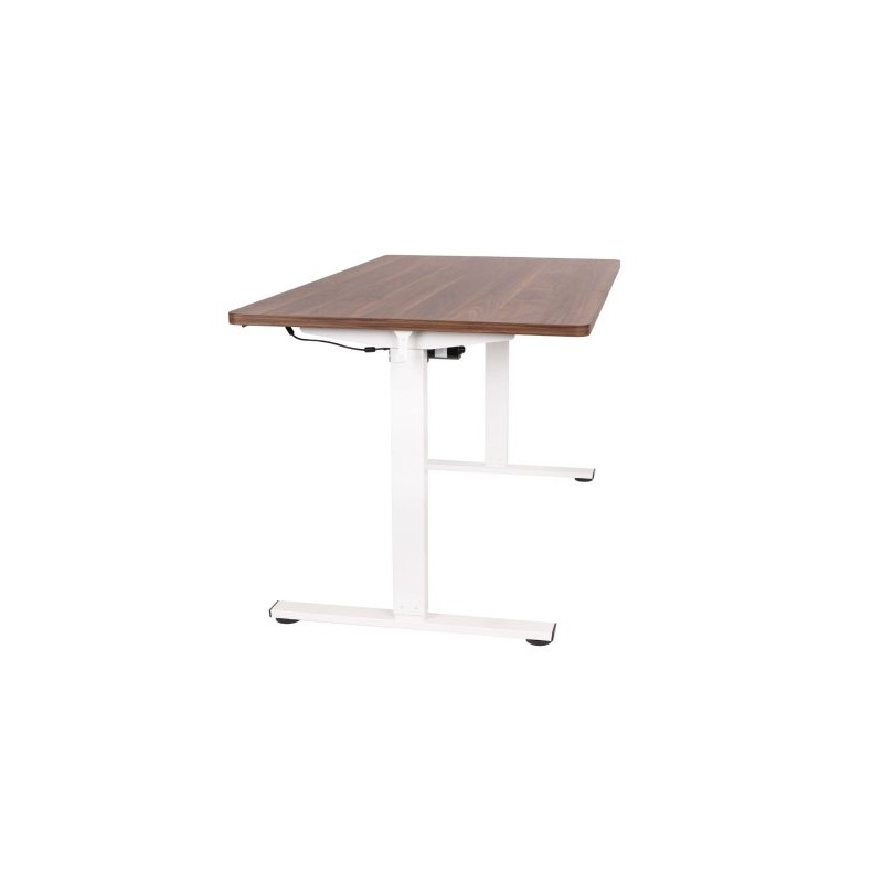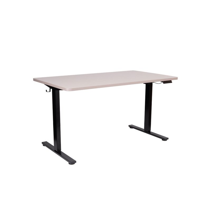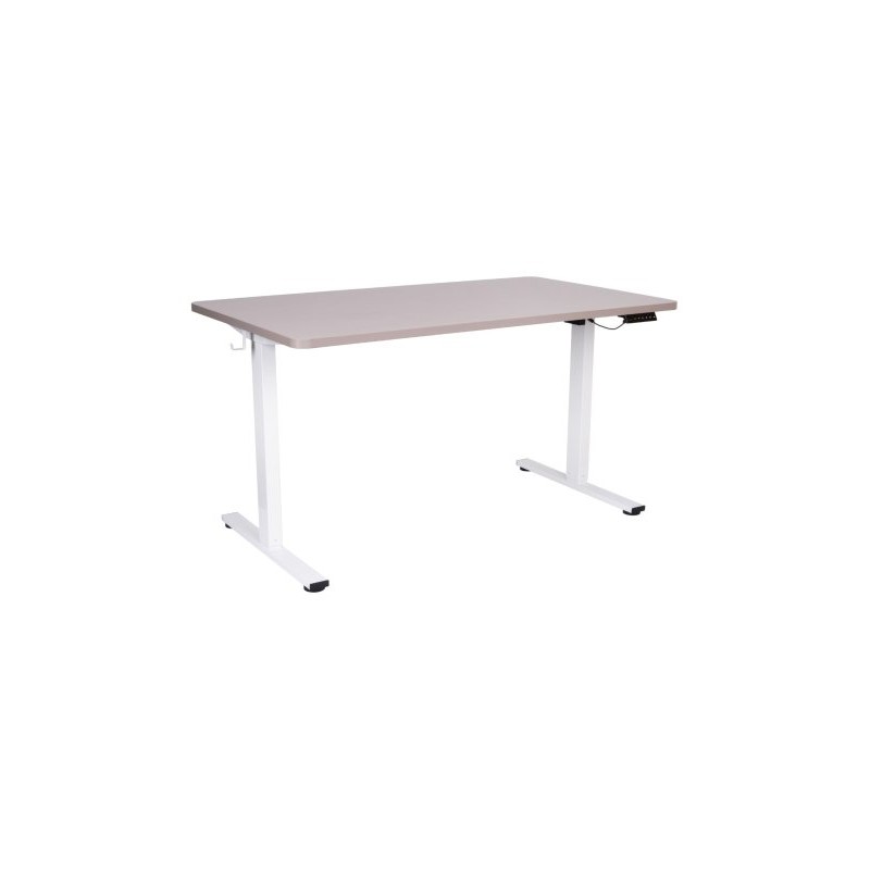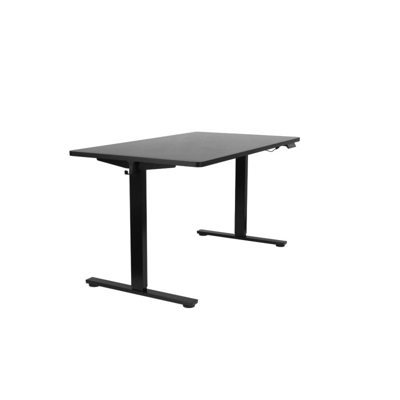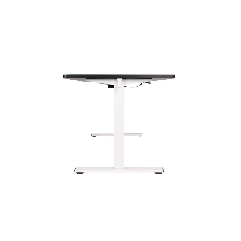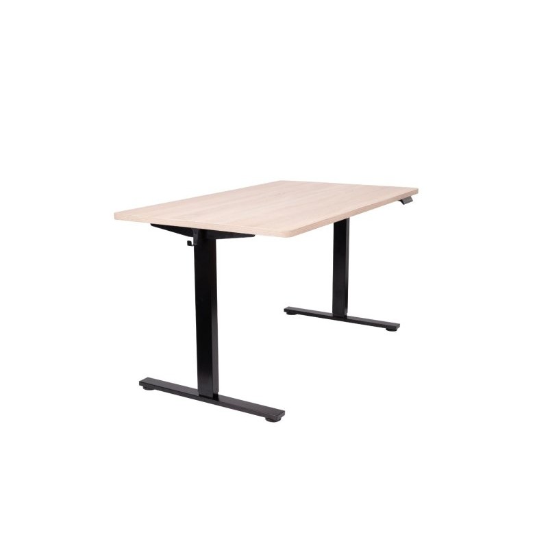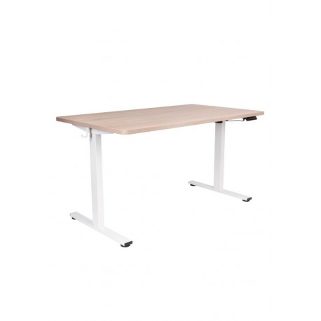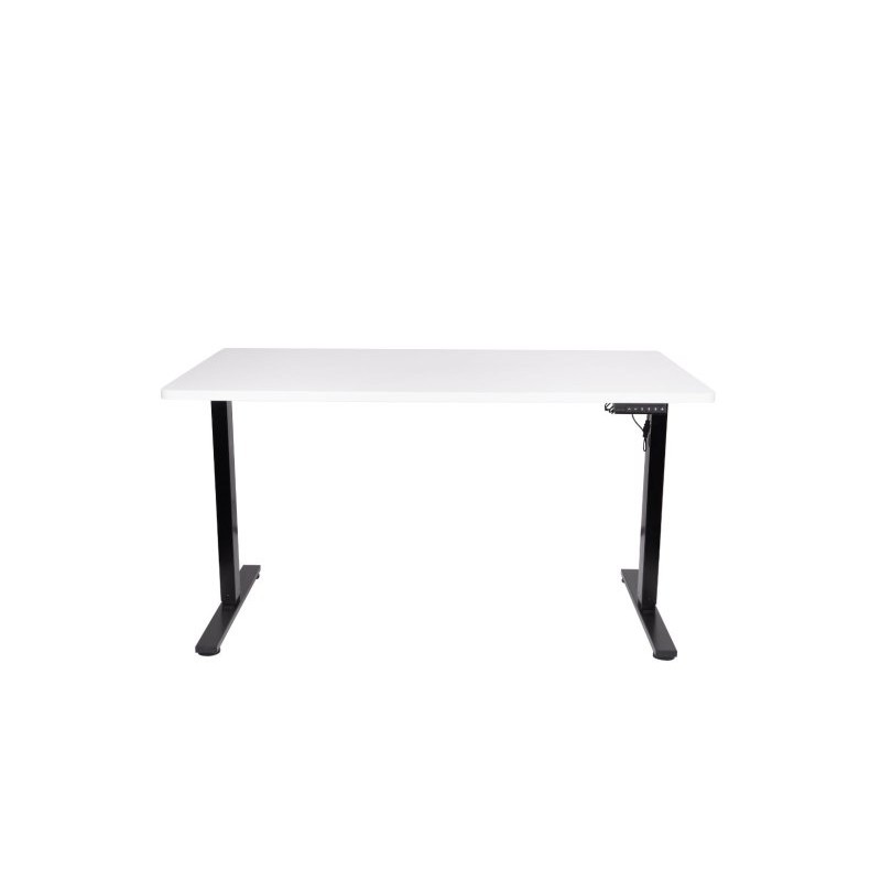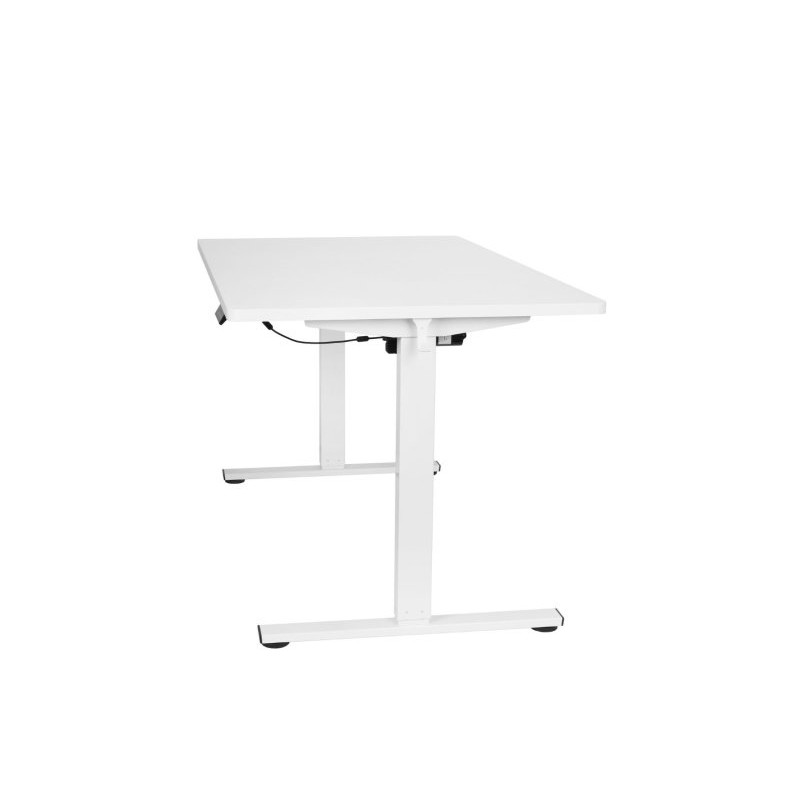 Stabilna stalowa konstrukcja stelaża zapewnia trwałość oraz bezpieczeństwo podczas pracy. System regulacji oparty jest na elektrycznym mechanizmie z jednym silnikiem, który umożliwia płynną zmianę wysokości blatu w zakresie około 735–1180 mm.
