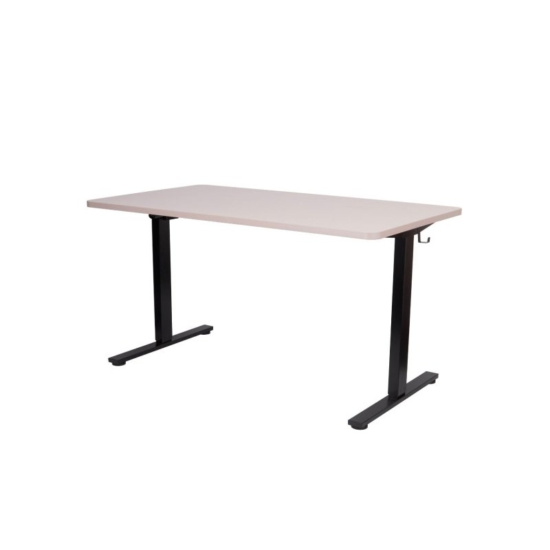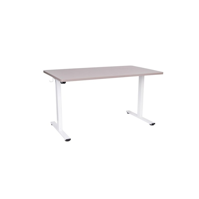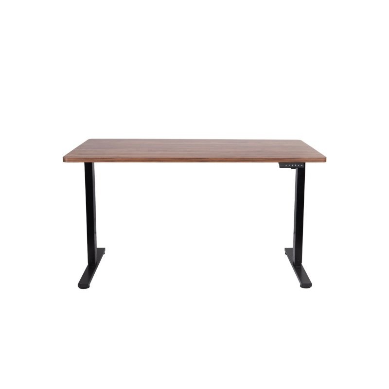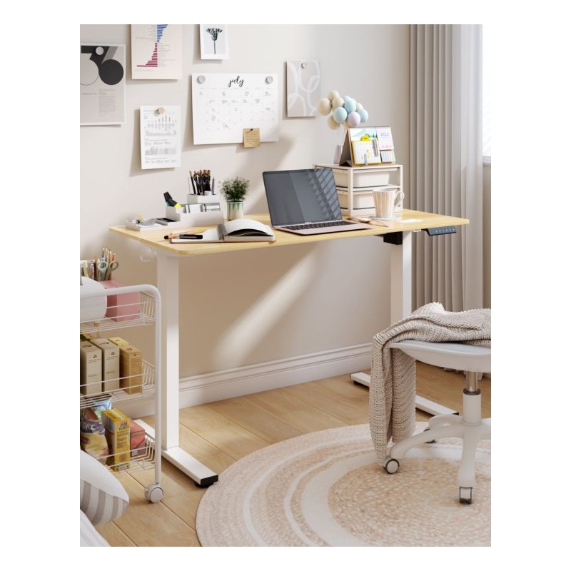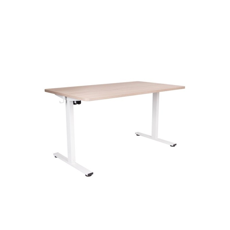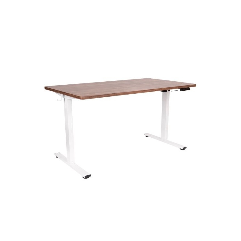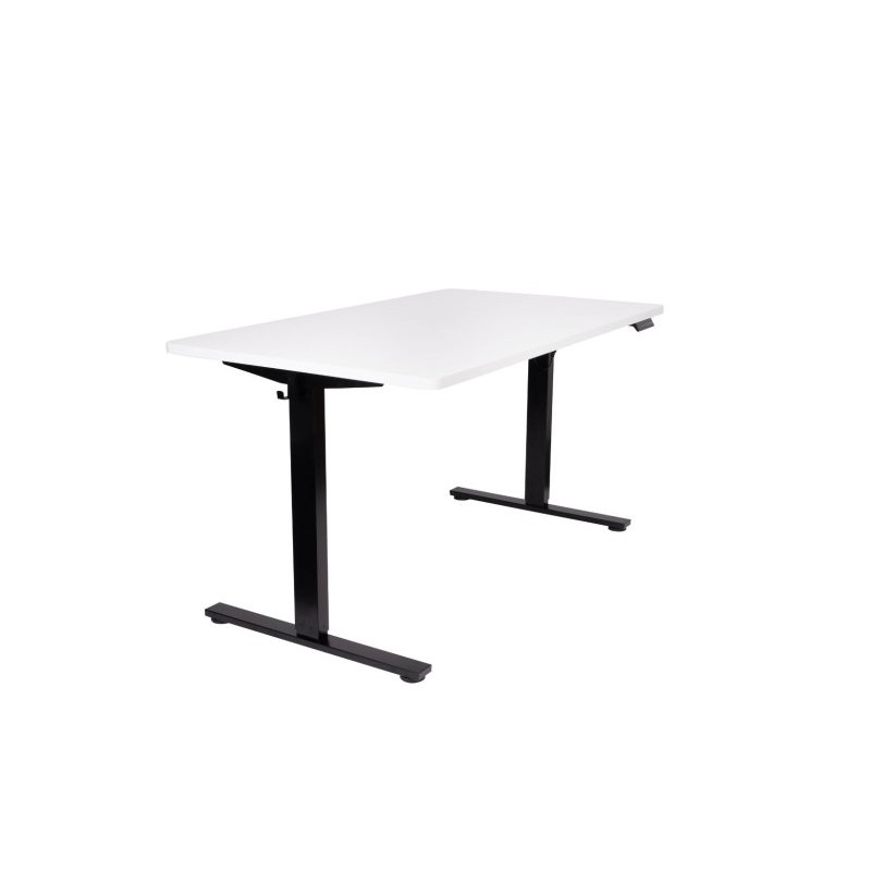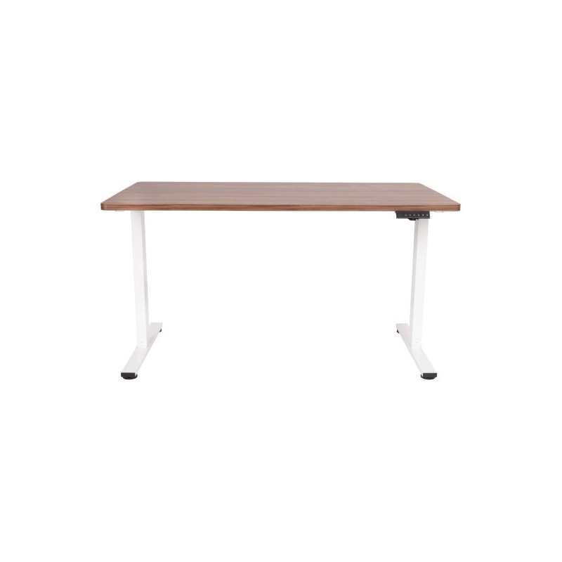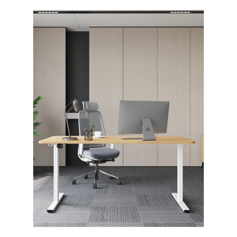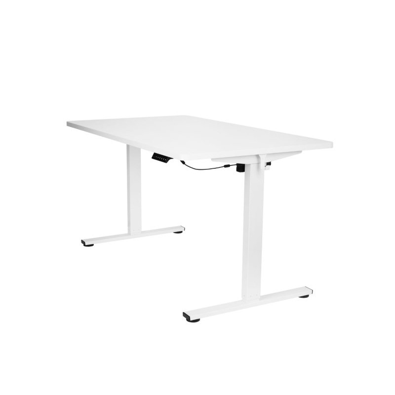 Stabilna stalowa konstrukcja stelaża zapewnia trwałość oraz bezpieczeństwo podczas pracy. System regulacji oparty jest na elektrycznym mechanizmie z jednym silnikiem, który umożliwia płynną zmianę wysokości blatu w zakresie około 735–1180 mm.