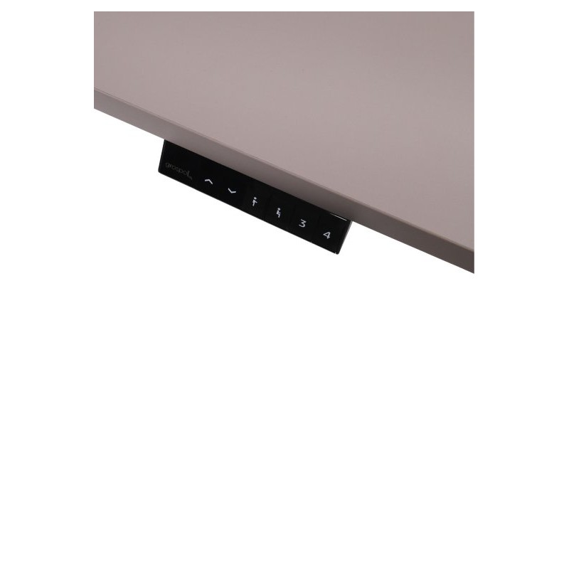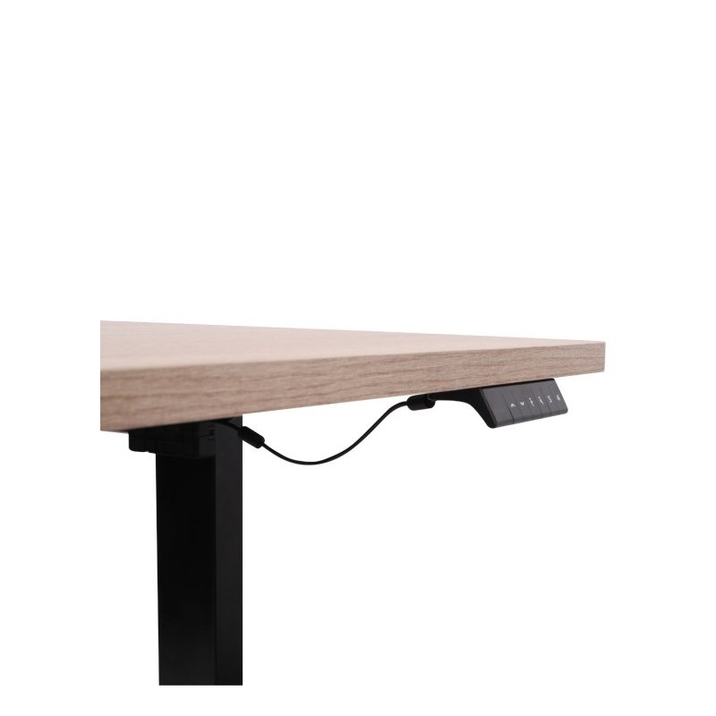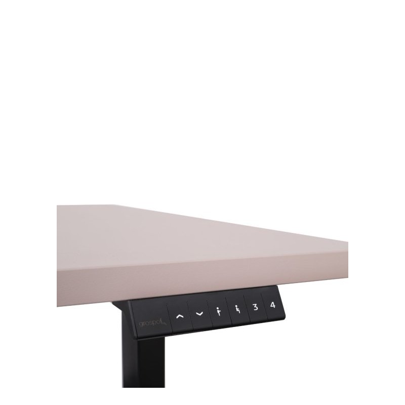Pod blatem znajduje się intuicyjny panel sterowania z wyświetlaczem LED, pokazujący aktualną wysokość biurka. Użytkownik ma możliwość zaprogramowania do czterech ulubionych ustawień wysokości, co ułatwia szybkie dostosowanie stanowiska pracy do własnych preferencji.