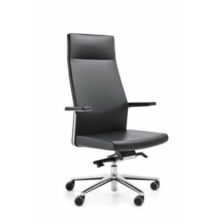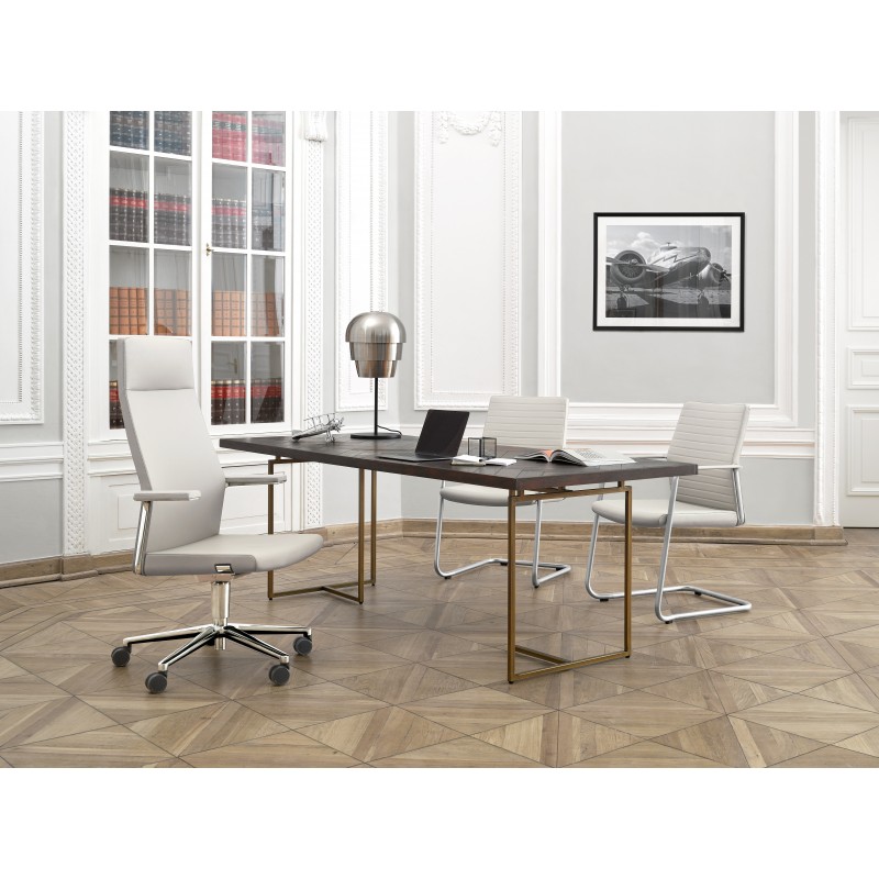 Najwyższy poziom elegancji i stylu. Projektant Paul Brooks połączył precyzyjne wykończenia skórzane z elementami aluminiowymi. Wersja konferencyjna sprawdzi się w salach spotkań, a opcja obrotowa uzupełni gabinety kadry menadżerskiej.