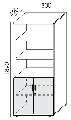 Regał RXP-4 składa się z dwóch części zamkniętej i otwartej