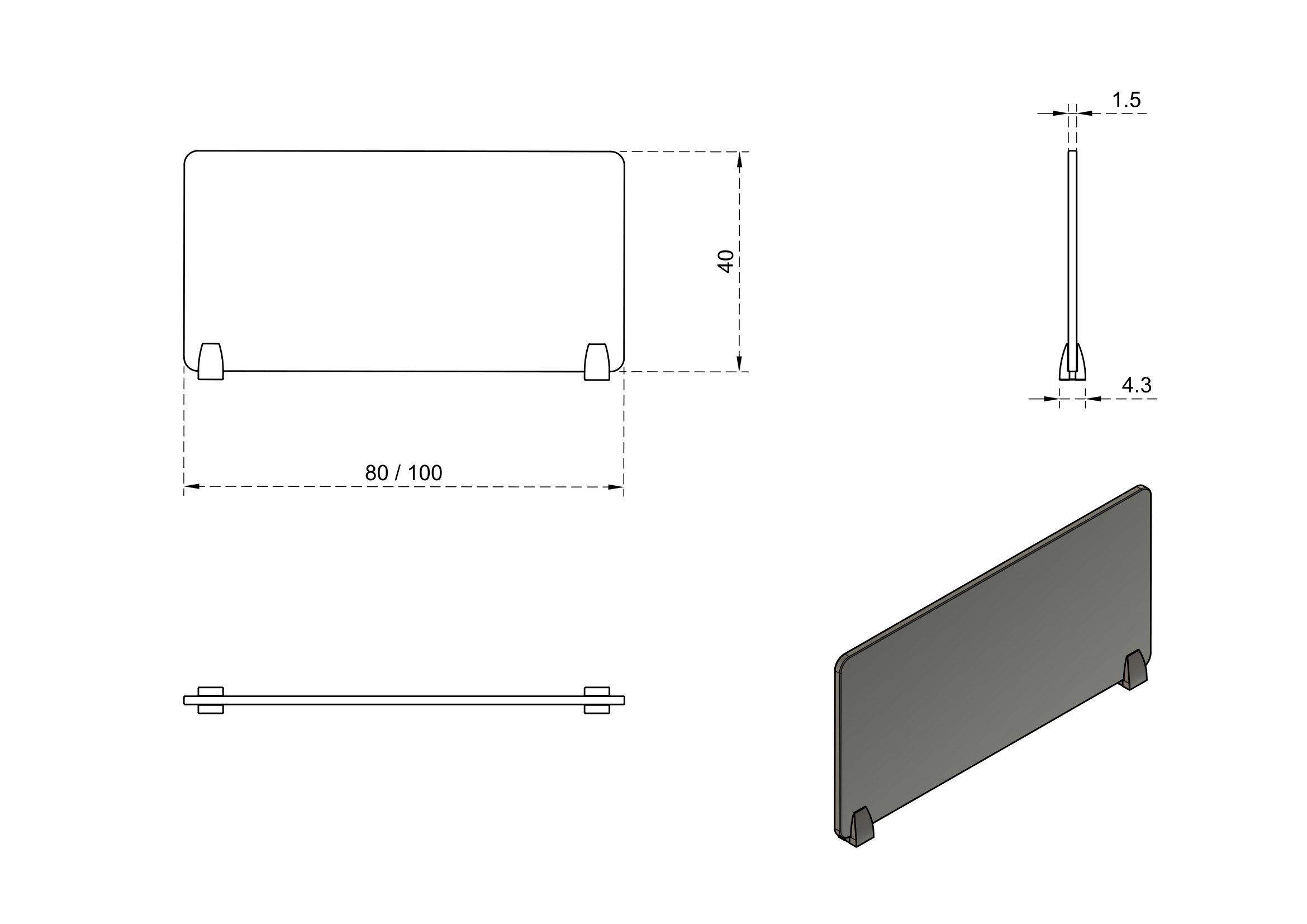 UNIQUE MEBLE przegroda biurkowa (80x40 cm)